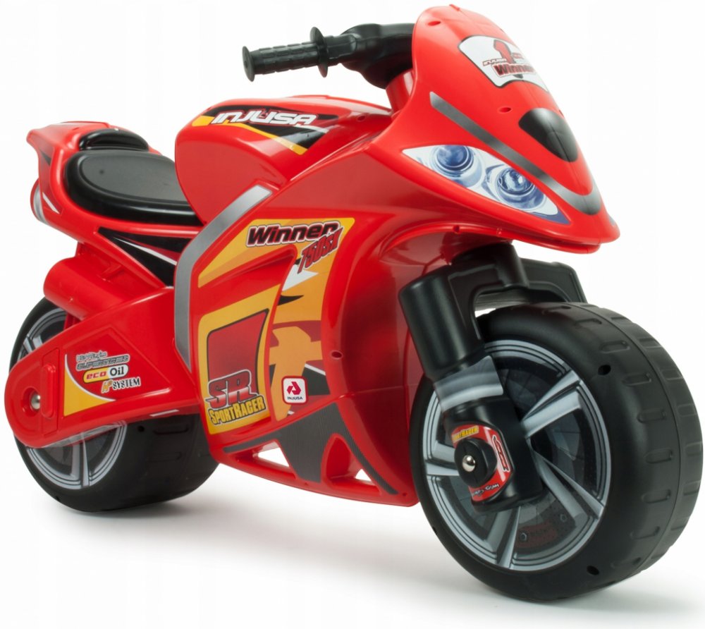 Položku máme SKLADEM. Běhací motorka Winner od španělského výrobce INJUSA je skvělým nápadem na dárek pro děti od 3 let. Díky tvarovanému sedadlu a volantu s otočným předním kolem je jízda pohodlná a bezpečná. Široká kola dodávají vozidlu stabilitu a sportovní vzhled přitahuje pozornost. Červená edice oblíbeného vozítka.