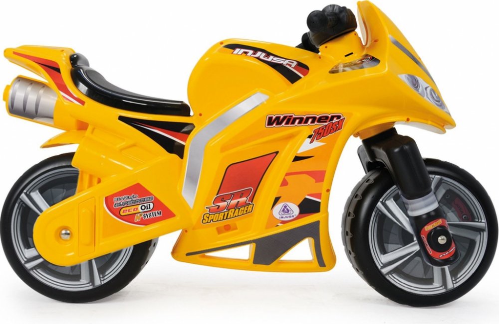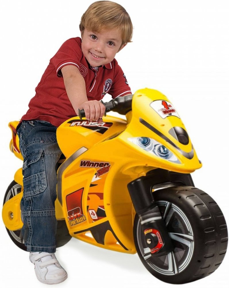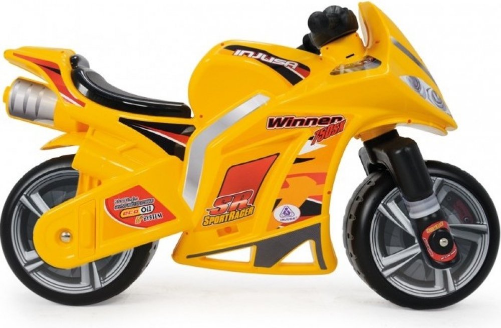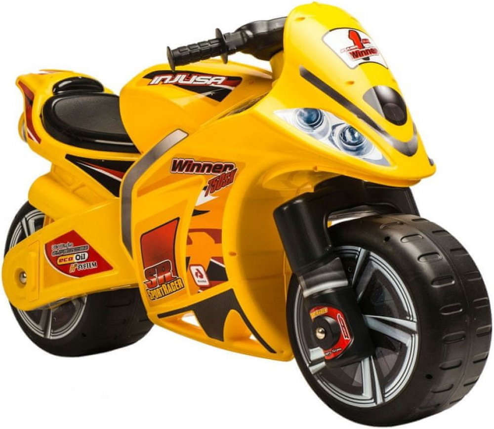 0.5 kg Injusa žlutá 25 kg s plastovými koly 3 let kovová motorky pro kluky a holky