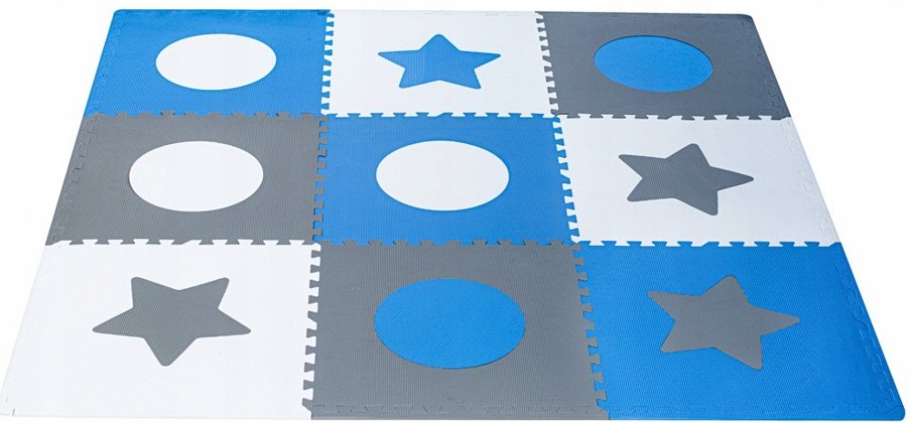 INKA Pěnová podložka puzzle pro děti 180x180cm 9 dílků šedá a modrá