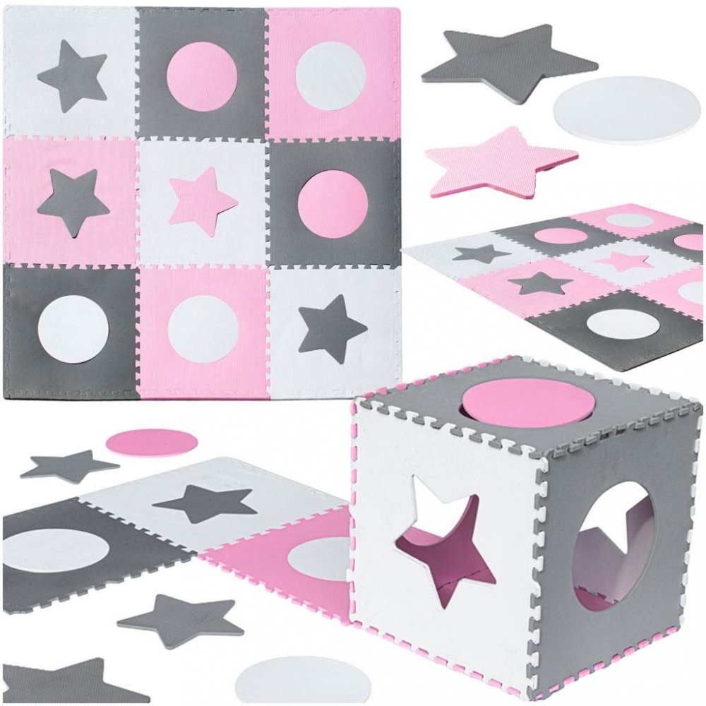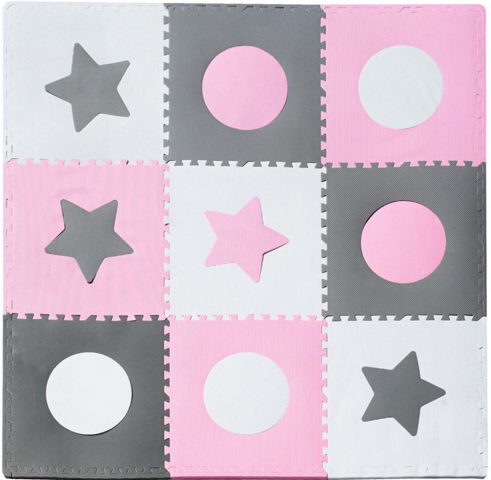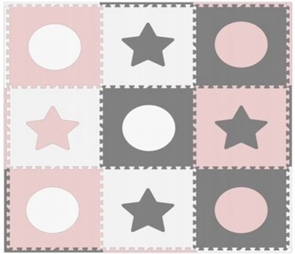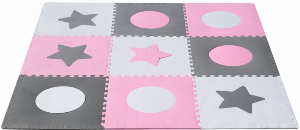 INKA Pěnová podložka puzzle pro děti 180x180cm 9 dílků šedá a růžová