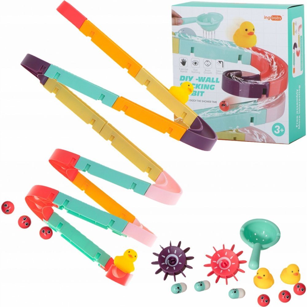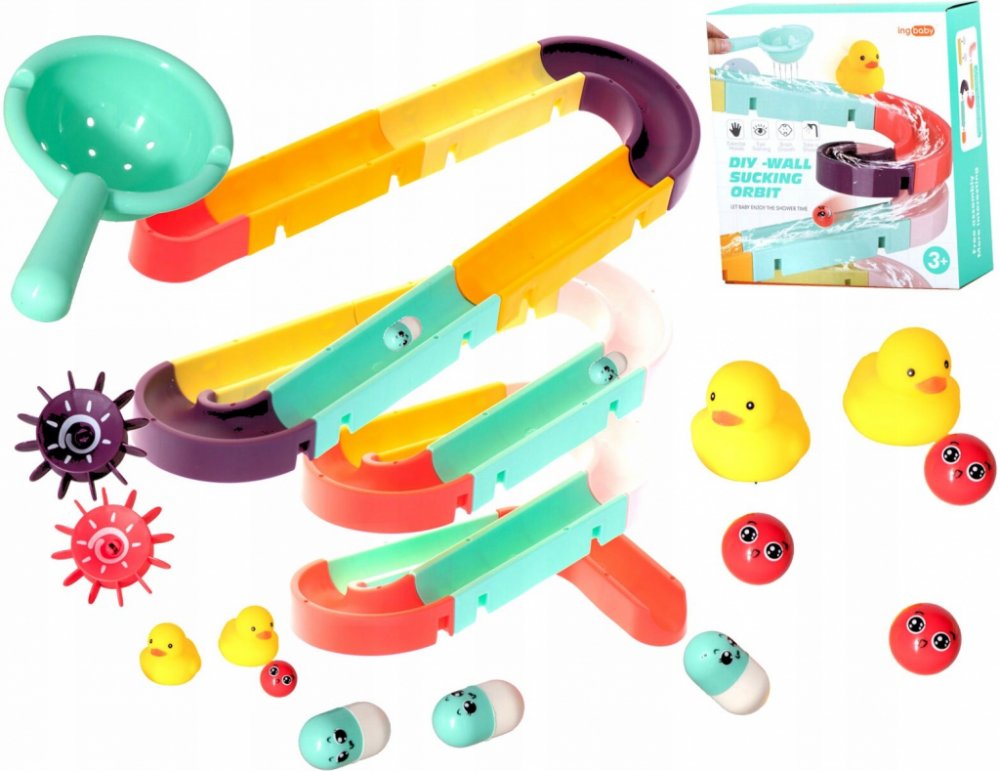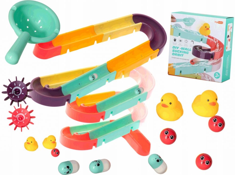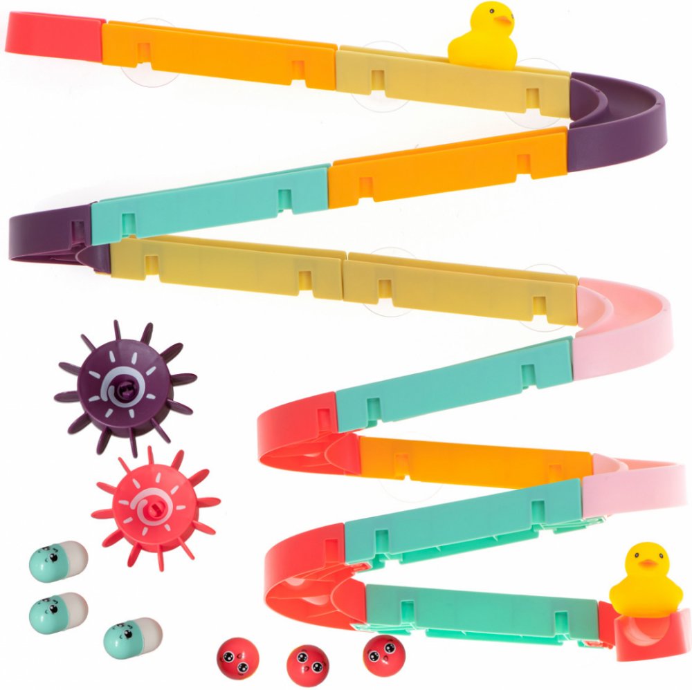 Hračka je dodávána s přísavkami, které usnadní připevnění dráhy na glazuru nebo vanu.