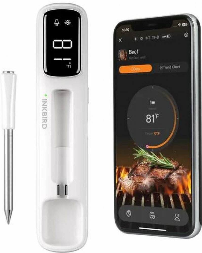 INKBIRD INT-11I-B je mini bezdrátový inteligentní teploměr se stabilním připojením Bluetooth 5.4, speciálně navržený pro grilování. Inteligentní aplikace nabízí širokou škálu menu a podporuje vzdálené sledování stavu pokrmu, čímž zajišťuje, že každý pokrm dosáhne perfektní propečenosti. Díky LED displeji a kompaktnímu designu je vhodný pro širokou škálu prostředí a umožňuje vám ovládat vaření kdykoli a kdekoli, což z něj činí ideálního kuchyňského pomocníka.