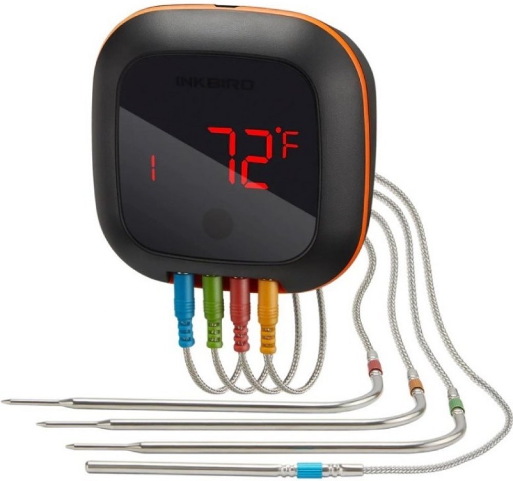 Bezdrátový digitální teploměr INKBIRD IBT-4XS se čtyřmi sondami s možností ovládání přes Bluetooth Teploměr naprosto snadno připojíte k Vašemu mobilnímu telefonu prostřednictvím bezplatné aplikace Aktuální teplota se zobrazí na velkém digitálním displeji a zároveň ve Vašem telefonuVelký podsvícený displej s možností otočení orientaceMagnet na zadní straně teploměru zajistí, že ho budete mít vždy po ruce - jednoduše připevníte na