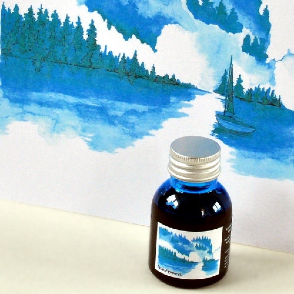 Lahvičkový inkoust pro plnicí pera z limitované edice od české značky Inkebara v barvě Modrá mlžná. Inkoustů v tomto jedinečném odstínu bylo vyrobeno pouze 64 kusů. Obrázek pro etiketu ručně namalovala Karolína Burská právě tímto inkoustem. Inkousty jsou na vodní bázi a zasychají dostatečně rychle, aby nedocházelo k rozmazání. Jsou vodou ředitelné a mezi sebou jsou volně mísitelné. Můžete tak experimentovat s vlastními barvami a odstíny. Dodáváno v plastové lahvičce s hliníkovým uzávěrem. Objem 60 ml.