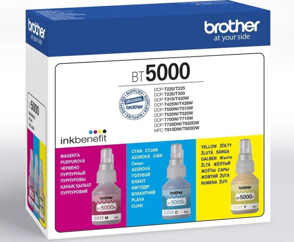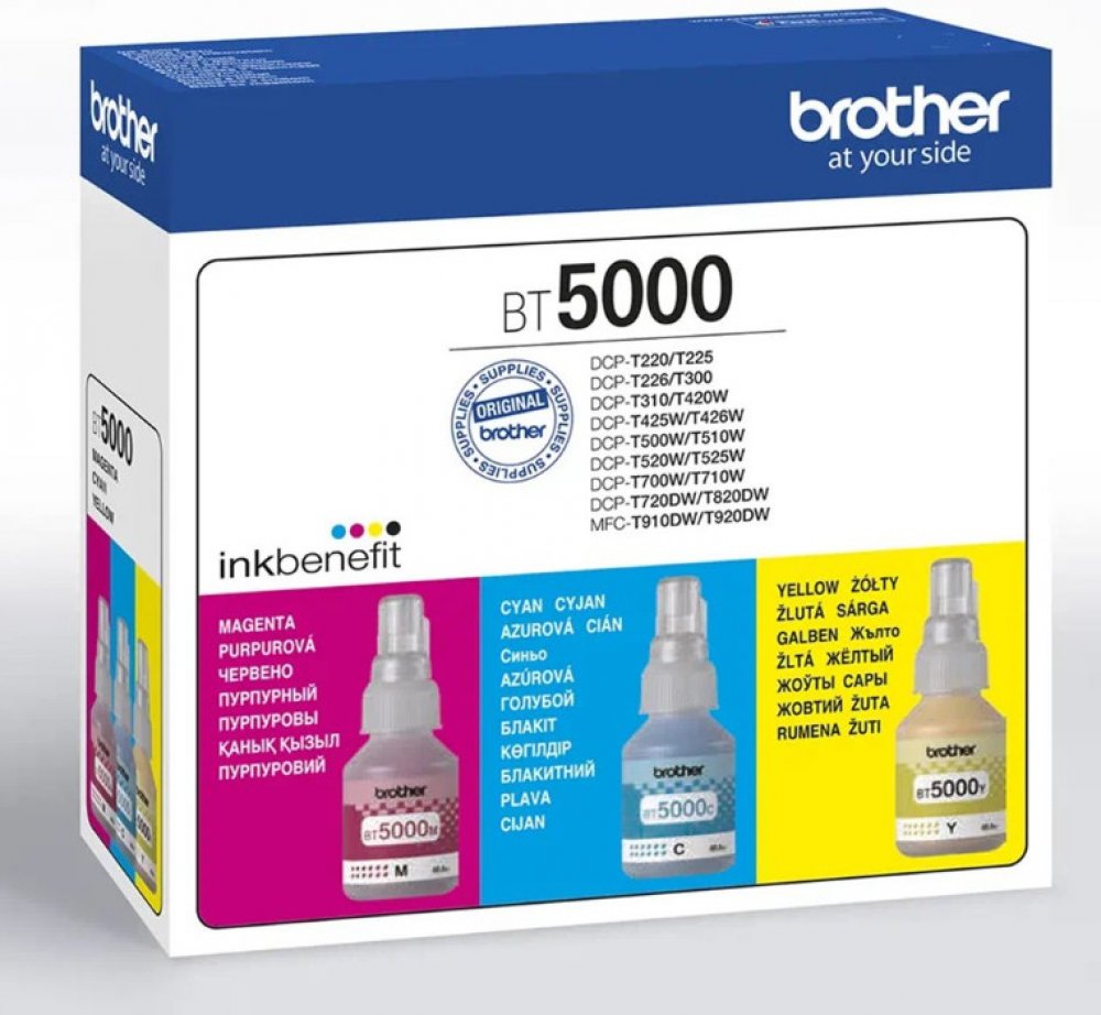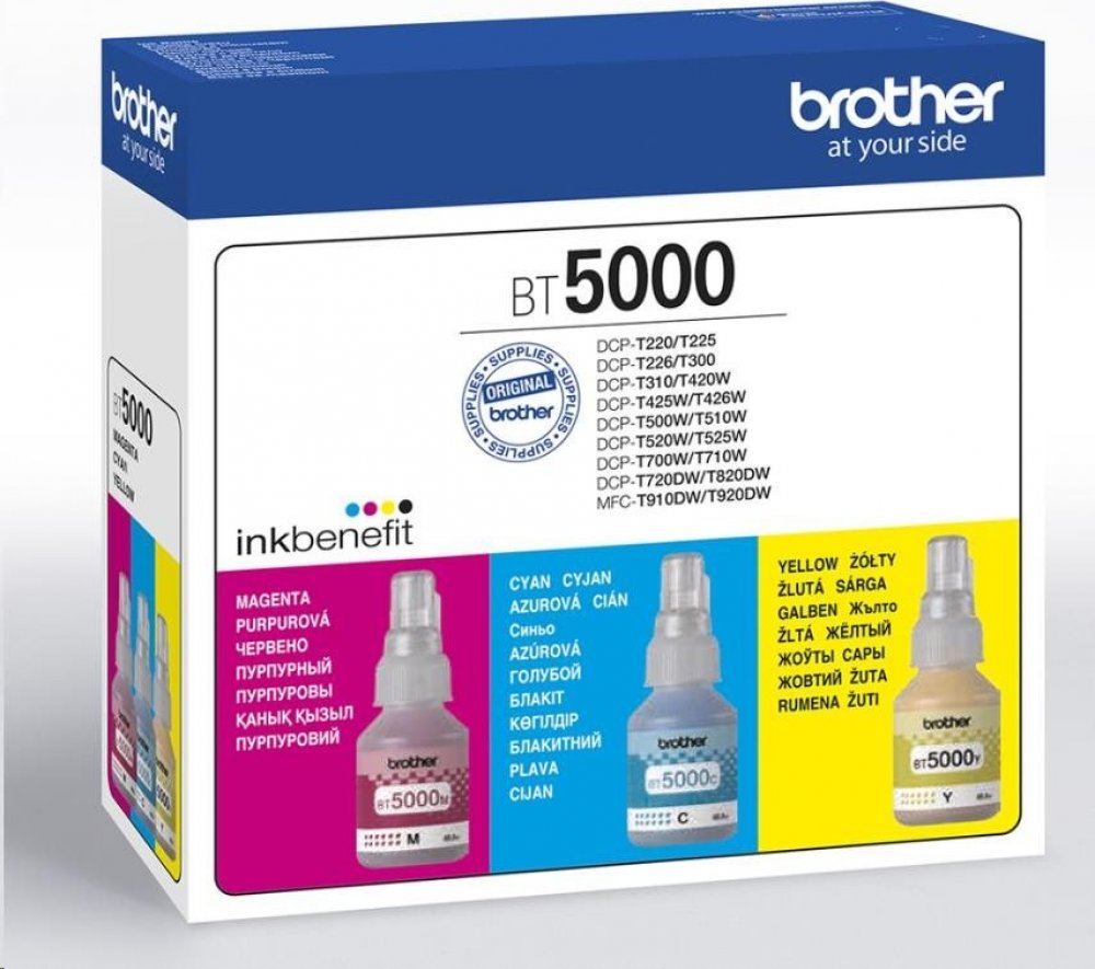 Sada originálních barevných inkoustových lahviček Brother BT5000CLVAL Brother BT5000CLVAL - sada lahviček s azurovým, purpurovým a žlutým inkoustem. Každá lahvička barevného inkoustu umožňuje vytisknout až 5 000 stran. Hledáte inkoust, který vám zajistí bezproblémový výkon při každém tisku? Sada inkoustů Brother BT5000CLVAL (azurová, žlutá a purpurová) s vlastnostmi odolnými proti blednutí barev. ...