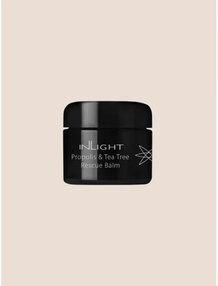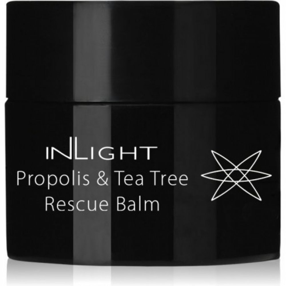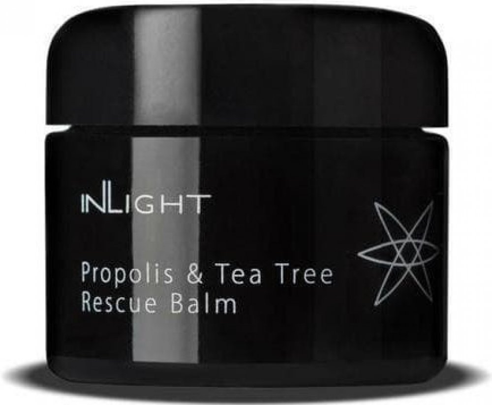 Lékař, homeopat a odborník na léčebnou fytoterapii MUDr. Spiezia vyvinul tento bio balzám jako doplněk bio kosmetické péče Inlight pro problematické typy pleti. Rescue balzám je namíchán z řady bylin, včetně propolisu a oleje tea tree, které jsou v léčitelství po staletí používány jako účinní pomocníci v boji proti akné, včetně vážnějších forem. Přirozeně silná, 100% bio a antibakteriální formule se hodí nejen na problematické zóny obličeje, ale také na tělo (například rozpraskané paty). Za svou účinnost vděčí především propolisu a kadidlu, jež mají velmi silné antibakteriální účinky, stejně tak olej tea tree, který zároveň napomáhá hojení a vysoušení ran.