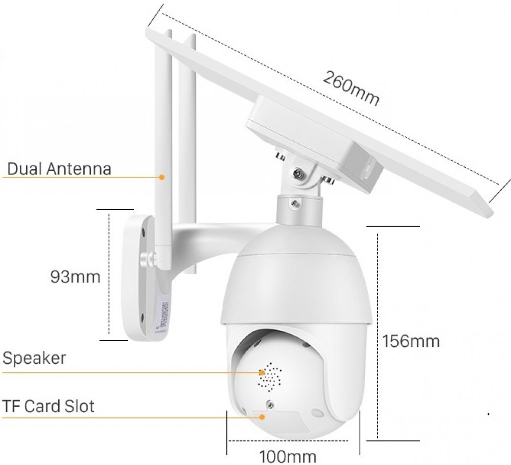 Chytrá venkovní bezpečnostní kamera s PIR čidlem pro detekci pohybu zajistí dokonalé zabezpečení prostoru. Snímač nabízí rozlišení 2 Mpx a je schopný snímat video v rozlišení Full HD 1080p při 15 fps. Pro případ zhoršených světelných podmínek je přítomen IR přísvit do vzdálenosti až 30 m a bílý LED přísvit pro pořizování barevných záznamů v noci. Součástí kamery je integrovaný reproduktor a mikrofon, který umožní kvalitní oboustrannou komunikaci. Natočené záznamy je možné ukládat i na microSD kartu o kapacitě až 128 GB. Připojení lze jednoduše realizovat bezdrátově pomocí Wi-Fi. Díky motorizovanému pohonu je možné kamerou otáčet v rozmezí 355° horizontálně a 100° vertikálně. Aplikace UBox umožní pohodlný vzdálený přístup, ovládání kamery, pořizování záznamů či upozornění v případě detekce pohybu. Kamera je díky solárnímu nabíjení nezávislá na zdroji napájení. Vyměnitelné baterie s celkovou kapacitou 15000 mAh lze však dobít i prostřednictvím micro USB portu.