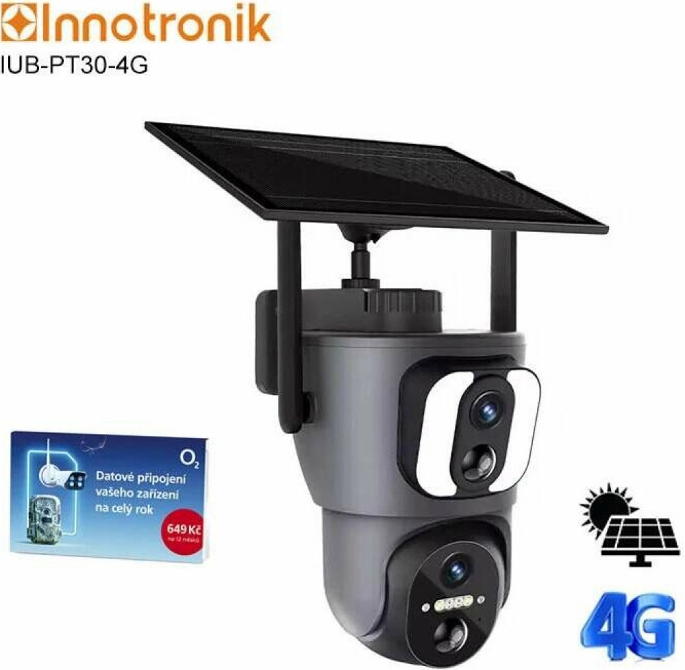 Solární PTZ otočná duální 4G kamera Innotronik IUB-PT30-4G (2MP + 2MP) s mobilní aplikací UBox