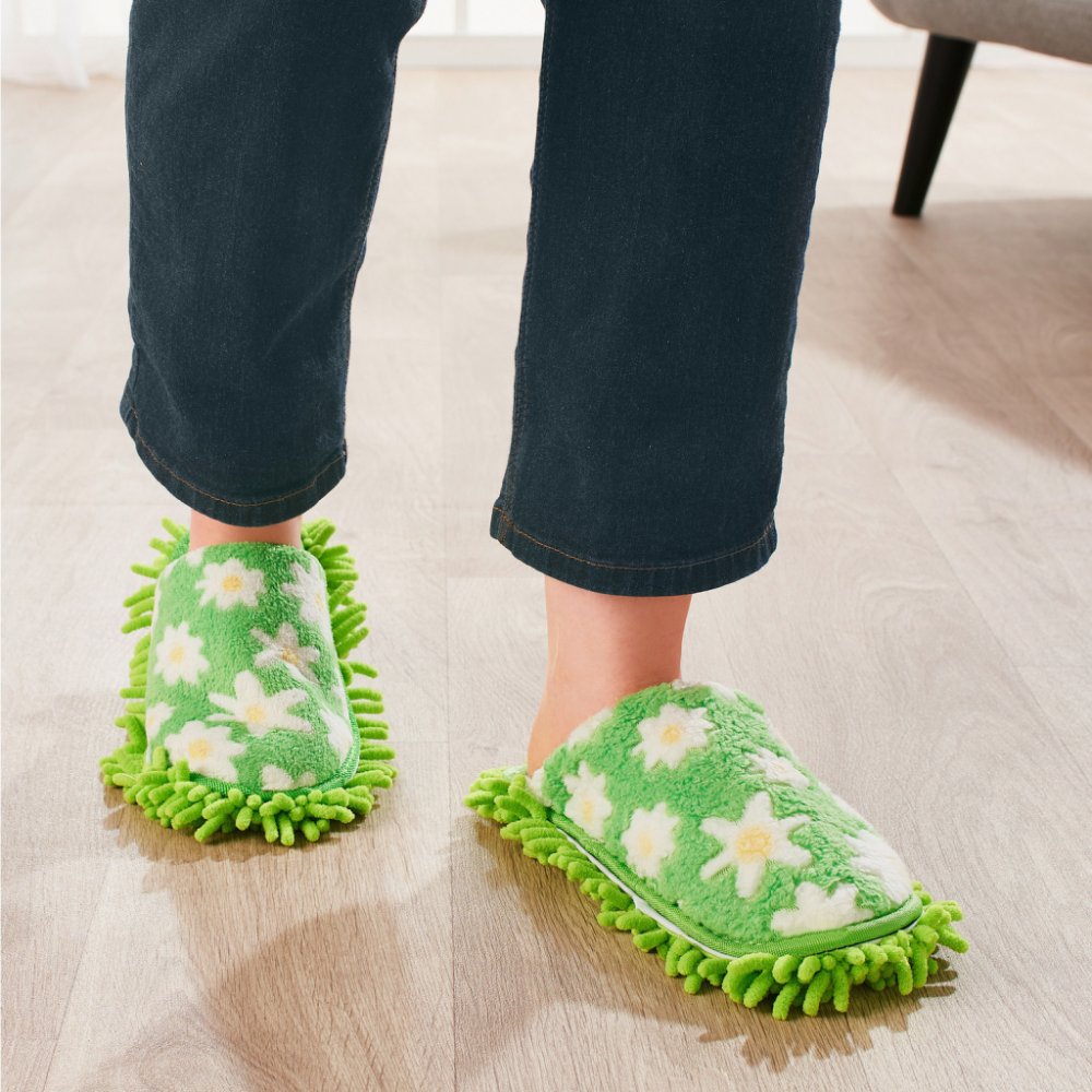 Tyto originální a praktické pantofle uklízejí a leští podlahu už tím, že po ní chodíte, protože mají na podrážkách mikrovláknové mopy (ušpiněné lze odepnout a vyprat). Skvělý vynález a pohodlná metoda, díky které je velmi jednoduché a bezpracné mít čisté podlahy.