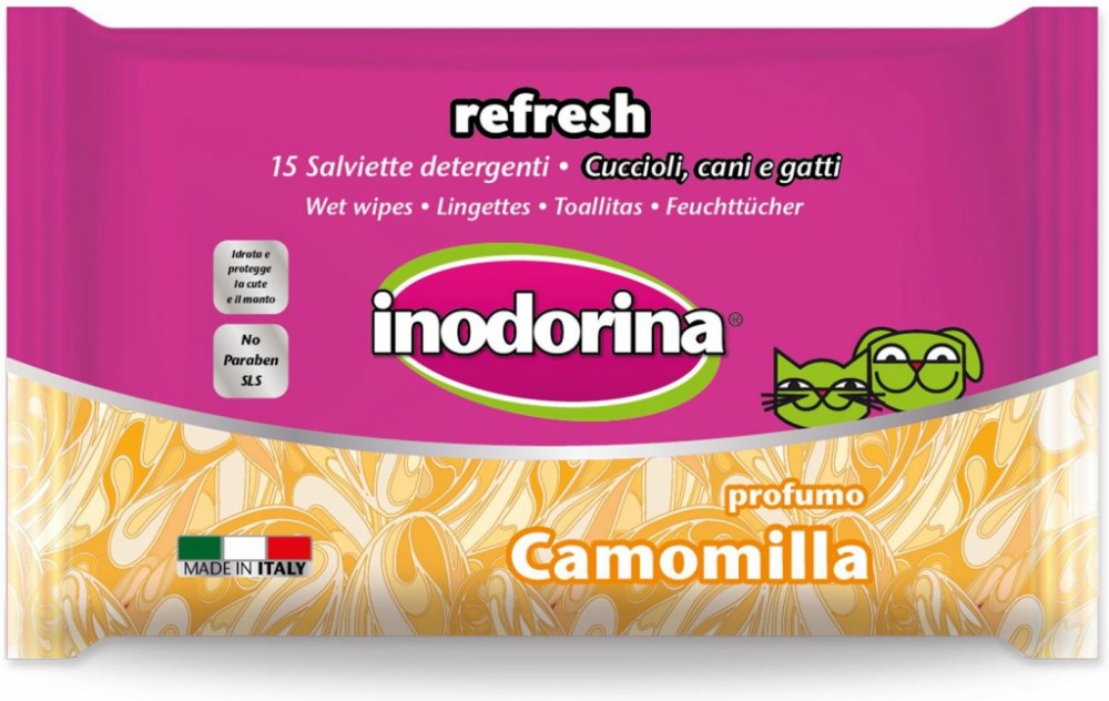 Vlhčené čisticí ubrousky s heřmánkem pro zvířata. Speciálně určeny pro čistění a hygienu očí a uší zvířete. Respektují přirozené pH.