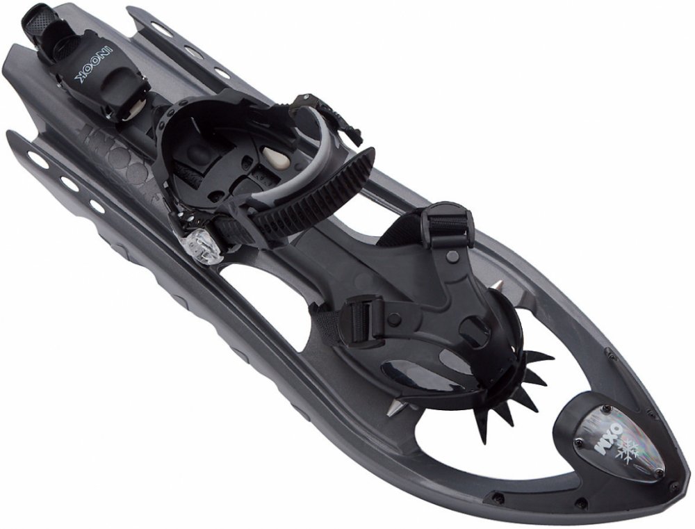 Nosná plocha sněžnice je vyrobena z velmi kvalitního plastu, který je dostatečně pevný i v tuhých mrazech. Tvar sněžnice řadí tento model spíš ke sportovnímu užití (závody a sportovně laděné jednodenní výlety). Sněžnice má zdvojené hrany, které si snadno poradí i s případným firnem. Sněžnice je osazena šesti ocelovými hroty a dalšími dvěma na výklopné špičce. Zvrchu na špičce je sněhový rozhazovač, který vám ušetří spoustu síly při zvedání nohy ze sněhu. Sněžnice Inook mají výborně řešený systém uchycení špičky boty, který velmi dobře upevní jakoukoliv botu (trekkingová, snowboardová, …). Sněžnice díky posuvnému systému uchycení paty je velmi snadno nastavitelná pro jakoukoliv velikost boty. Maximální velikost boty je 12. Inook Inookem dělá jedinečný systém zamykání paty. Zamknutí či odemknutí lze jednoduše udělat holí vestoje, jak známe ze skialpového vázání. Už žádné problémy při překračování spadlých stromů a podobně. Lišta, po které se posouvá uchycení paty, je z vyztuženého materiálu. Proto lze zamykací systém použít i jako celkem užitečné podložení paty, které též známe ze skialpů. Za zmínku stojí i chytře řešené upínání boty. Dotažení boty je pomocí ráčny jak známe ze snowboardového vázání. Na ráčně je systém, díky kterému lze ráčnu snadno povolit i v rukavicích. Navíc lze upínací pásek vystředit pomocí druhé ráčny a přizpůsobit tak objemu boty.