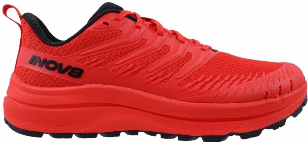Boty TRAILFLY MAX jsou určeny pro běžce, pro které je nejdůležitější komfort, a představují nejtlumenější botu v nové nabídce Inov8. Vylepšený, anatomičtější tvar je ideální pro dlouhé vzdálenosti. Tlumení a Komfort: Mezipodešev je tvořena novou, superkritickou dusíkovou pěnou FLYSPEED PRO, která je energeticky návratná, měkká a odolná. Výška mezipodešve dosahuje pod patou 24 mm, což poskytuje pořádnou ochranu proti tvrdým dopadům. Dynamika a Střih: Střední drop 6 mm zachovává přirozenost běhu a usnadňuje přechod z dopadu do odrazu. Bota je ve široké verzi s dostatečným prostorem pro palec, což podpoří správnou práci prstů. Stabilita a Svršek: Výztuhy v nártové oblasti chodidlo dostatečně fixují pro maximální jistotu i v technickém terénu. Všitý jazyk zabraňuje pronikání kamínků. Celkovou odolnost svršku doplňuje pryžová obsázka a chránič palců. Stélka a Hmotnost: K celkovému komfortu přispívá i BOOMERANG stélka z TPU. Váha boty je 300 g. Technologie Klíčová je kombinace dusíkové pěny FLYSPEED PRO pro maximální měkkost a energetickou návratnost, a podešve G-GRIP s příměsí grafenu pro zvýšení odolnosti a přilnavosti.
