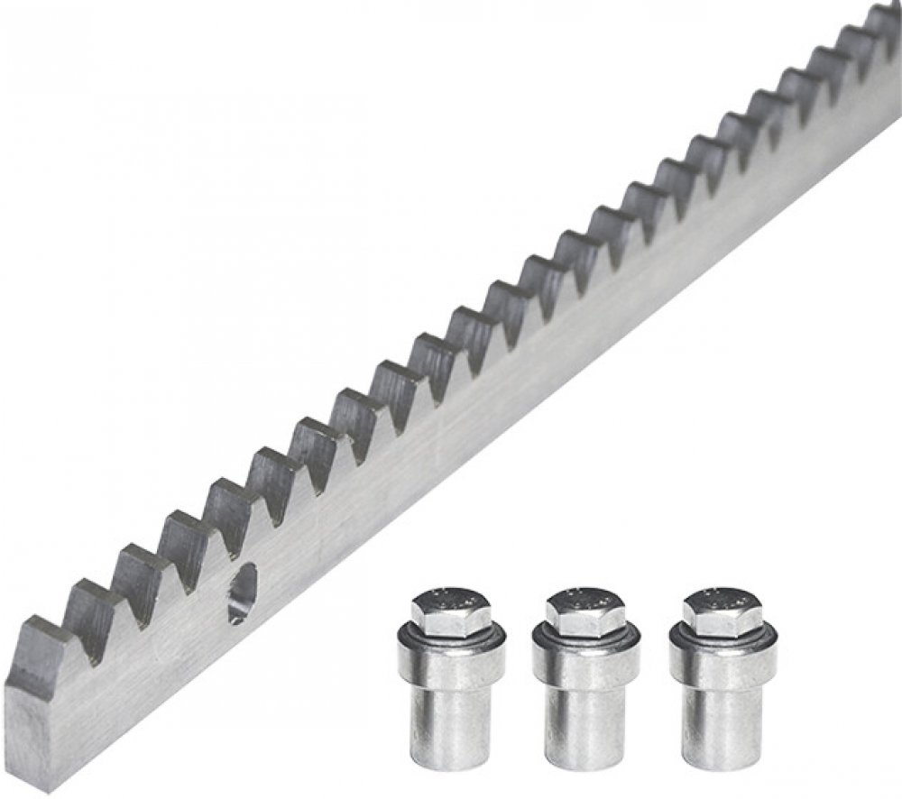 Hřeben s pastorkem se dodává včetně 3 ks svařovacích matic pro upevnění a 3 ks upevňovacích šroubů. Matice jsou primárně určeny k přivaření k bráně. Segmenty jsou vzájemně kompatibilní a lze je snadno propojit. Na 1 m hřebene připadají 3 nástavce.