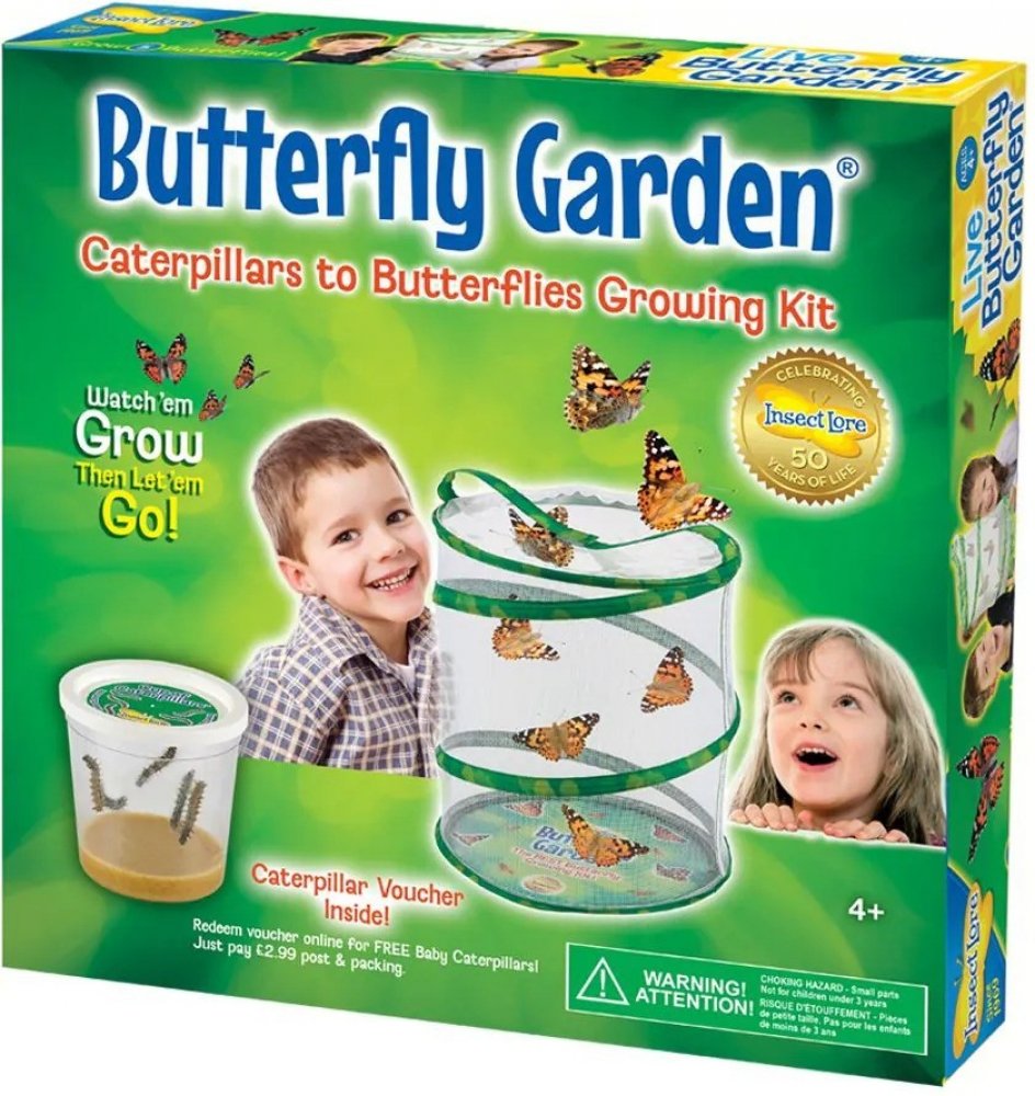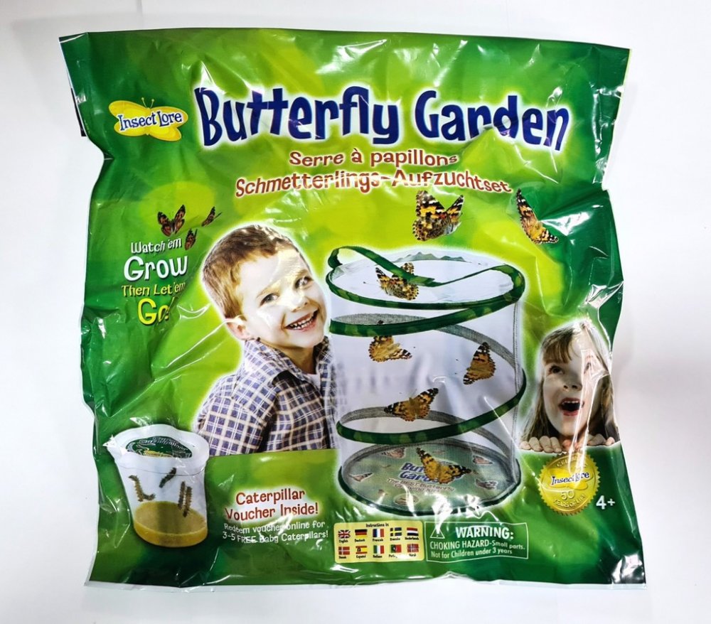 Motýlí zahrádka je experimentální/edukativní sada, která nabízí praktickou zkušenost s chovem ŽIVÝCH motýlků od housenek až po vylíhnutí a vypuštění zpět do přírody. V přírodě není problém vidět motýly a při troše štěstí narazíte i na nějakou tu housenku. Jen těžko ale najdete kukly motýlů a s největší pravděpodobností neuvidíte celý vývoj naživo. A to je právě to co motýlí zahrádka umí - na vlastní oči můžete sledovat housenky babočky bodlákové transformující se v kukly a následně do překrásně barevných motýlů. Po vylíhnutí děti několik dnů motýlky krmí a pozorují a nakonec je vypustí zpět do přírody. V průběhu vývoje není vyžadována žádná zvláštní péče a motýlům není nijak ublíženo.
