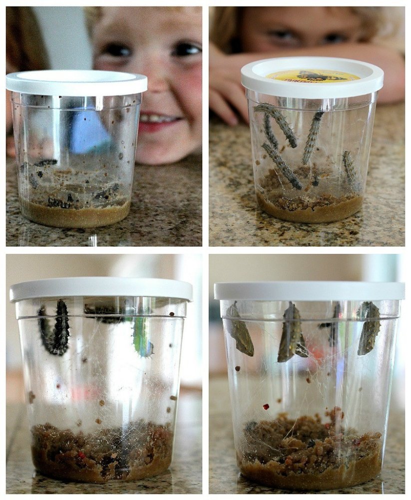 Housenky nejsou přímo součástí této sady, ale objednáváte je samostatně pomocí přiloženého certifikátu. Dodání housenek s krmením trvá 1-2 týdny od přijetí objednávky. Při objednání housenek již NIC NEPLATÍTE, doručení na adresu zákazníka je zahrnuto v ceně této sady (platí pouze pro dodání na adesu v České republice).