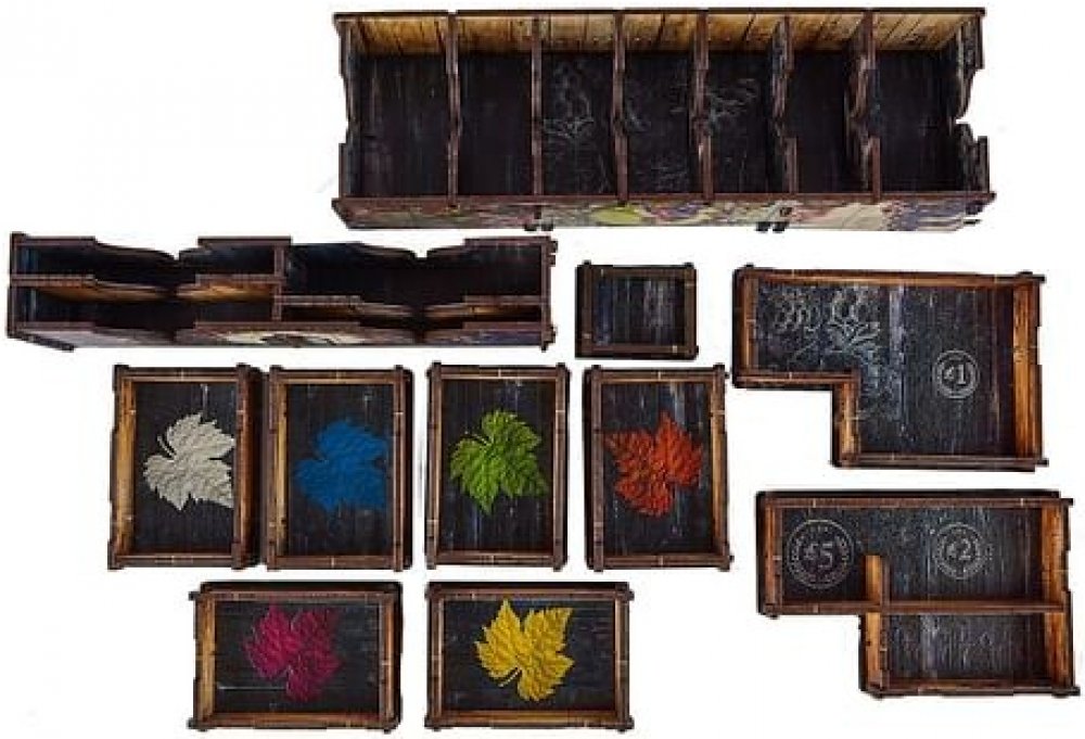 Díky šikovnému insertu budeš mít všechny herní komponenty pro hru Viticulture: Essential Edition a její rozšíření Tuscany, Moor Visitors a Visit from the Rhine Valley přehledně roztříděné a uspořádané. Tento herní insert má navíc digitální UV potisk. K sestavení není zapotřebí lepidla. Vhodné pro krabici o vnějších rozměrech 27 x 22 x 10,5 cm. Originální komponenty jsou pouze pro ilustraci a nejsou součástí balení.