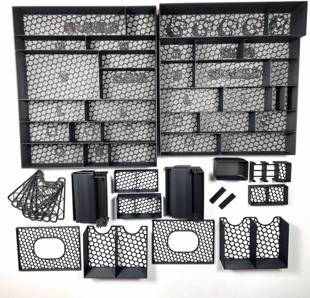 Vložka je odolná a vyrobená z PLA. K jejímu sestavení není potřeba žádné lepidlo. Umožňuje udržet všechny komponenty uvnitř krabice, i když je uložena bokem! Vše se vejde do základní herní krabice. Víko herní krabice se nezvedá.