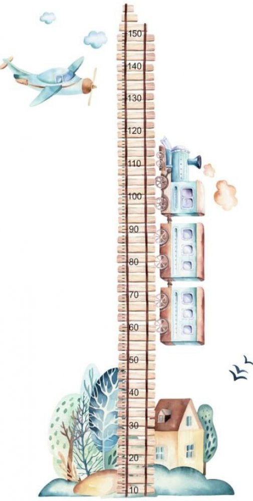 Metr s vláčkem a letadlem je oblíbenou dekorační samolepkou do dětského pokoje.