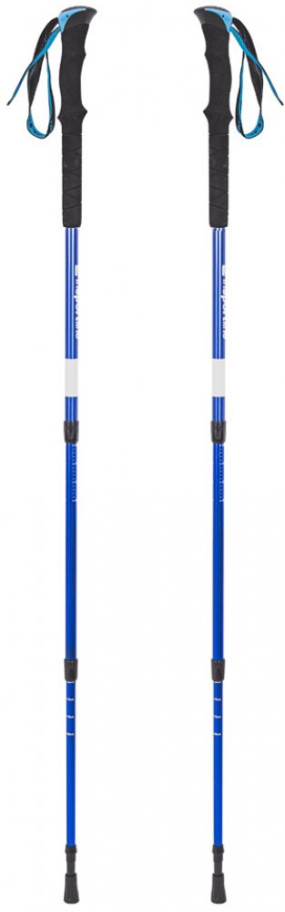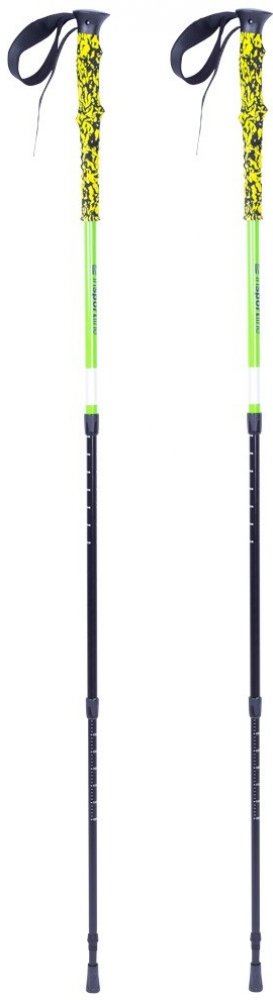 Reflexní prvky, dlouhé pěnové madlo, nastavitelné poutko, ocelový hrot, výměnné patky a kloboučky, cena za dva kusy.