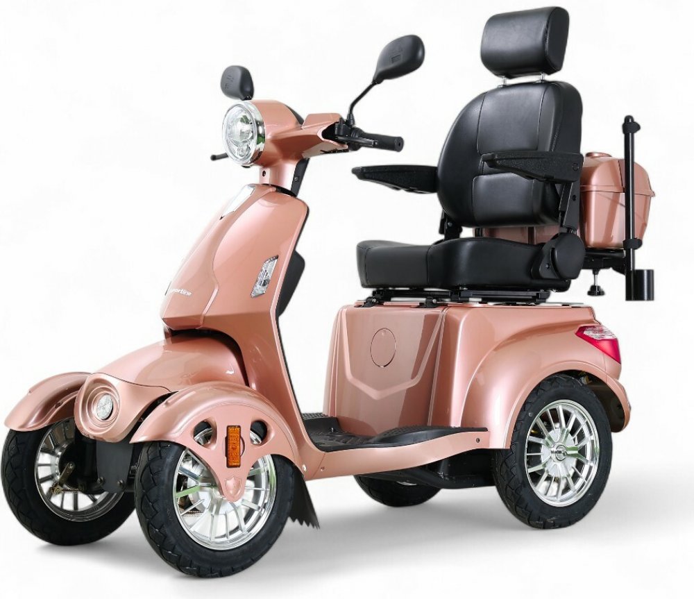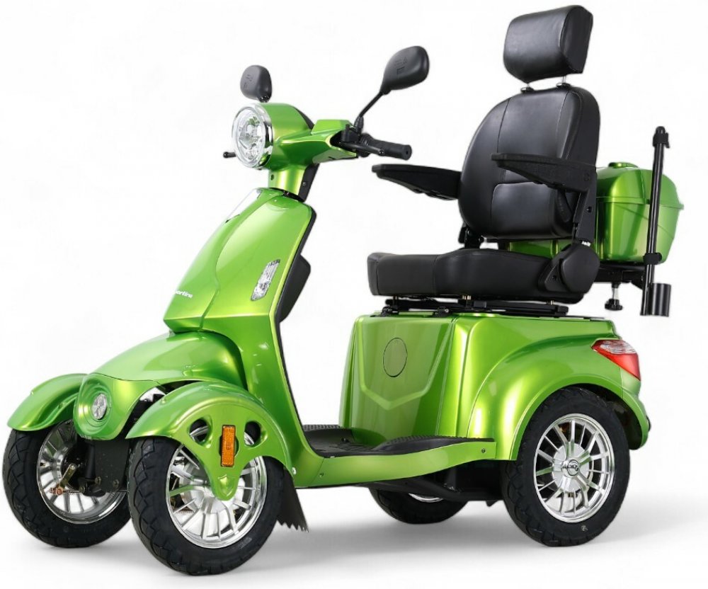 Jelikož se jedná o skútr na elektrický pohon, je provoz stroje tichý a šetrný k životnímu prostředí. Navíc na něj můžete naskočit i bez řidičáku! Sedadlo je pohodlné a díky sklápěcím opěrkám se bez problému pohodlně usadíte, i když jste v pohybu omezeni. V zadní části pak najdete hned 2 úložné prostory, kam v pohodě složíte nákup nebo menší zavazadla.