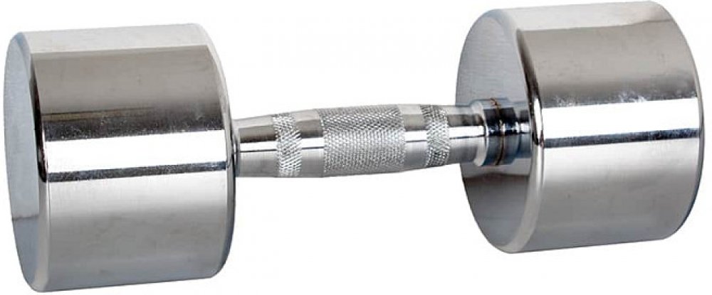 Jednoruční chromová činka s ergonomickou rukojetí, protiskluzové vroubkování.
