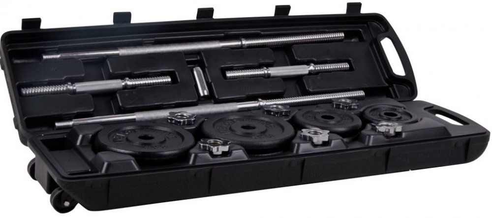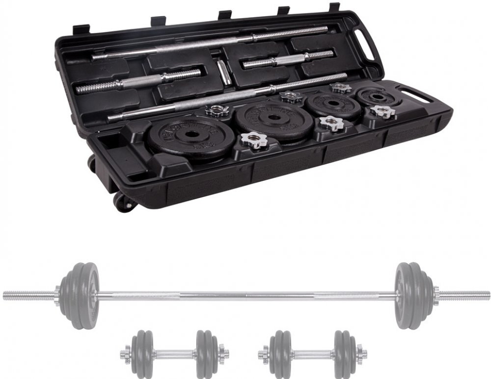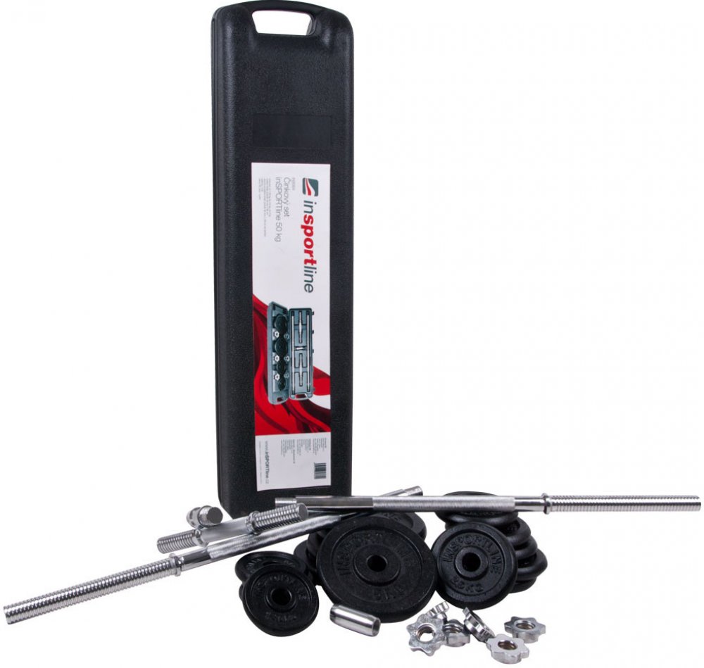 Činkový set v kufru inSPORTline 5-50 kg je set tvořený dvěma osami, jednou vzpěračkou tyčí, 14 kotouči a bezpečnostními objímkami. Kotouče v hmotnostech 1,25 - 5 kg jsou vyrobeny z vysoce odolné oceli, která je opatřena speciální povrchovou úpravou proti odřeninám a korozi. Ocelové hřídele jsou na koncích opatřeny závitem pro snadné zajištění závaží pomocí bezpečnostních objímek. Kotouče tak drží ...