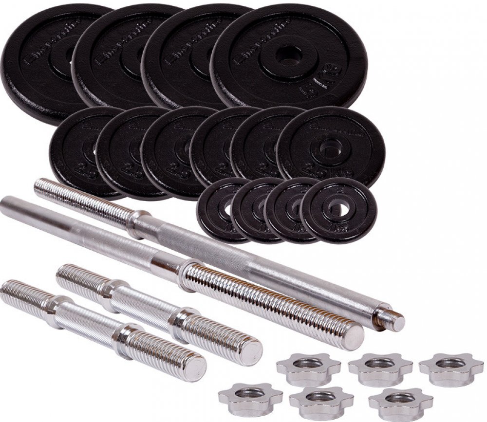 - 1x hřídel o hmotnosti 8 kg a délce 160 cm (průměru 30 mm, délka nakládací části 28 cm)