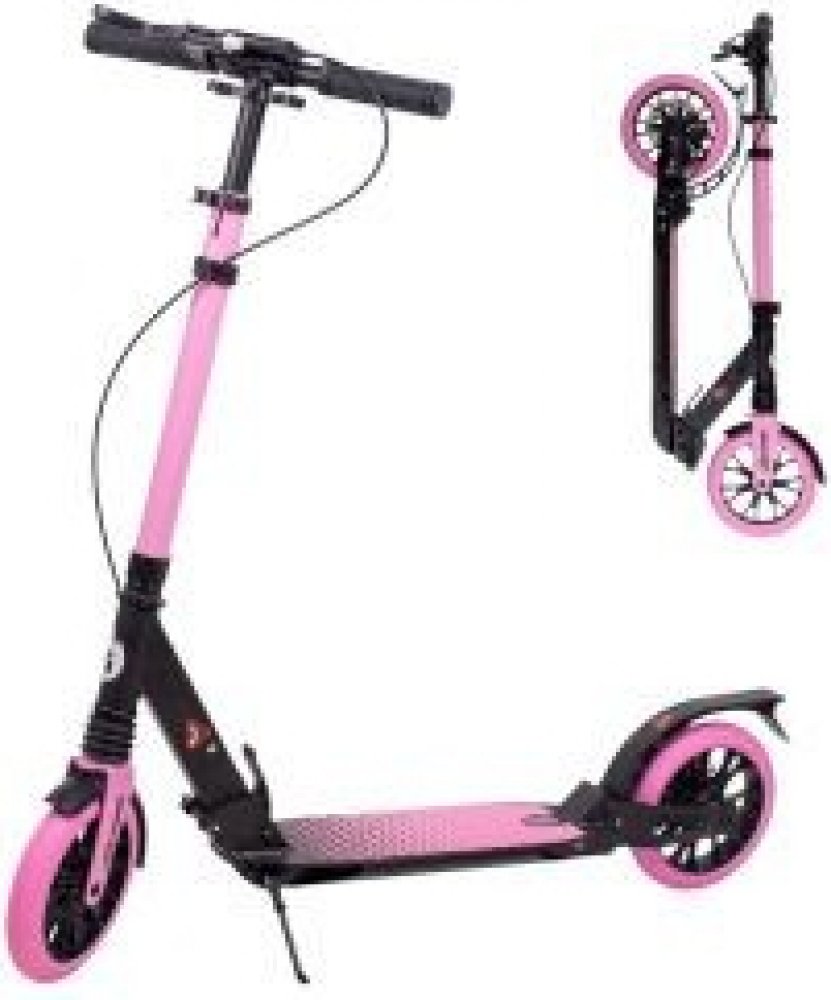 InSPORTline 6.5 kg 200 mm 100 kg s nášlapnou brzdou pro dospělé s polyuretanovými kolečky (PU) do města a na dojíždění 87 A A hliník 37.0 cm 91.5 - 107.5 cm 46.0 cm 13.5 cm s hliníkovým rámem s předním odpružením růžová pro mírně pokročilé