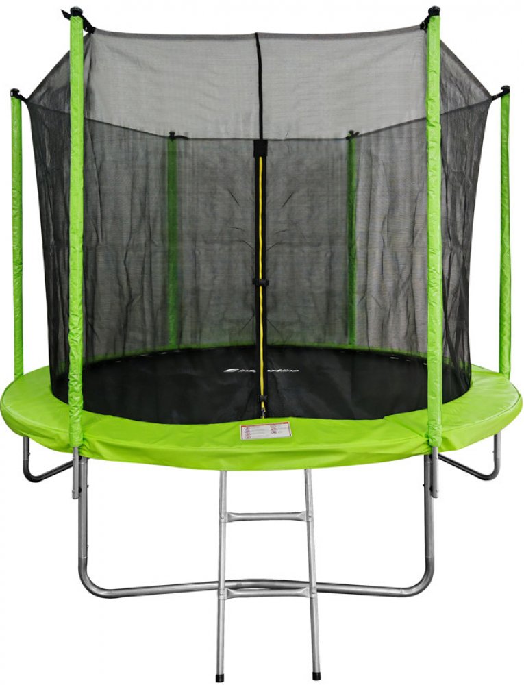 Skákejte bez starostí! Trampolína je vybavena kvalitní vnitřní bezpečnostní sítí o výšce 180 cm, která zajistí, že se nikdo nedostane mimo odrazovou plochu. Pružiny jsou kryty chráněny krytem a podpůrné tyče chrání měkké pěnové polstrování. Vstup je zajištěn dvojitým uzavíráním – kromě klasického zipu jsou zde i bezpečnostní přezky. Schůdky umožňují snadný a bezpečný vstup i pro menší děti.
