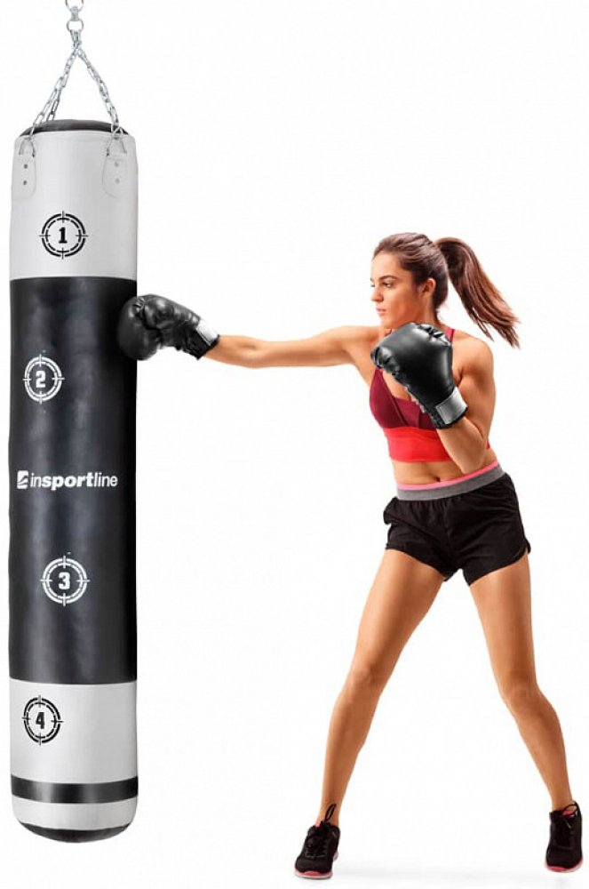 Boxovací pytel inSPORTline Robkin 180x35 cm je kvalitní boxovací pytel vhodný i pro ty nejnáročnější uživatele. Plášť je vyroben z odolné syntetické kůže s potisky terčů, díky kterým docílíte přesnějších úderů a váš trénink tak získá nový rozměr. Pytel je vysoce odolný a bez potíží si poradí i s tvrdými ranami a kopy. Vyplněn je směsí řezaných textilií a kůží (řezanka) na hmotnost 50 kg.