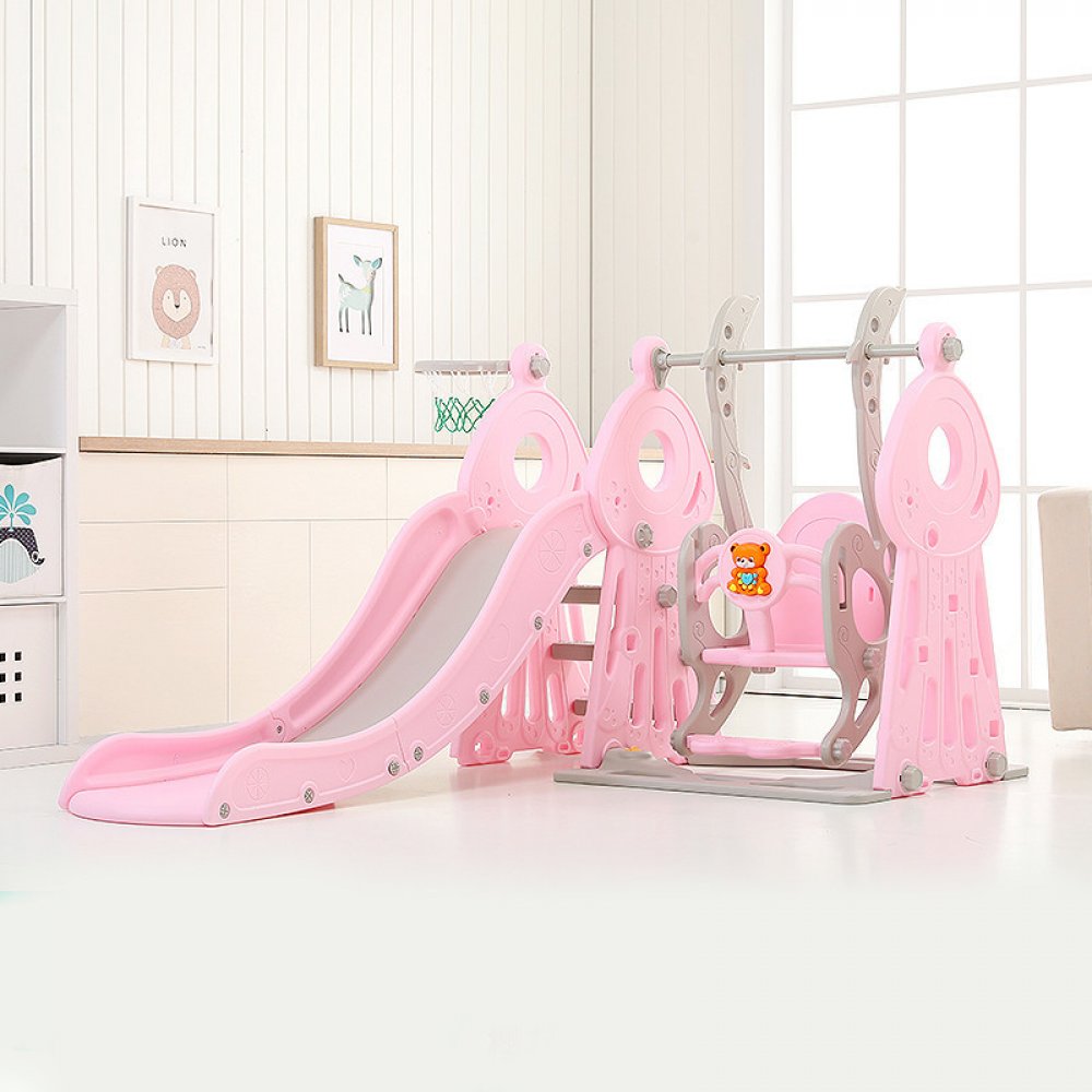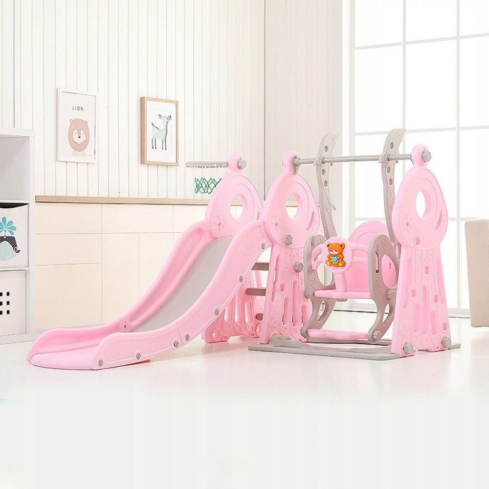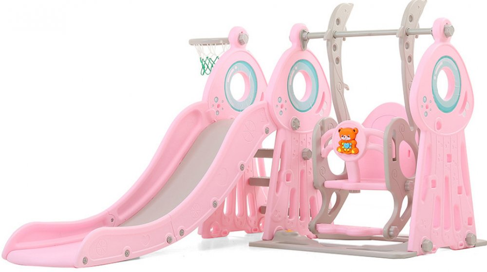 Roztomilá univerzální skluzavka s houpačkou a basketbalovým košem! A interaktivní medvídek zahraje i písničku pro vás!