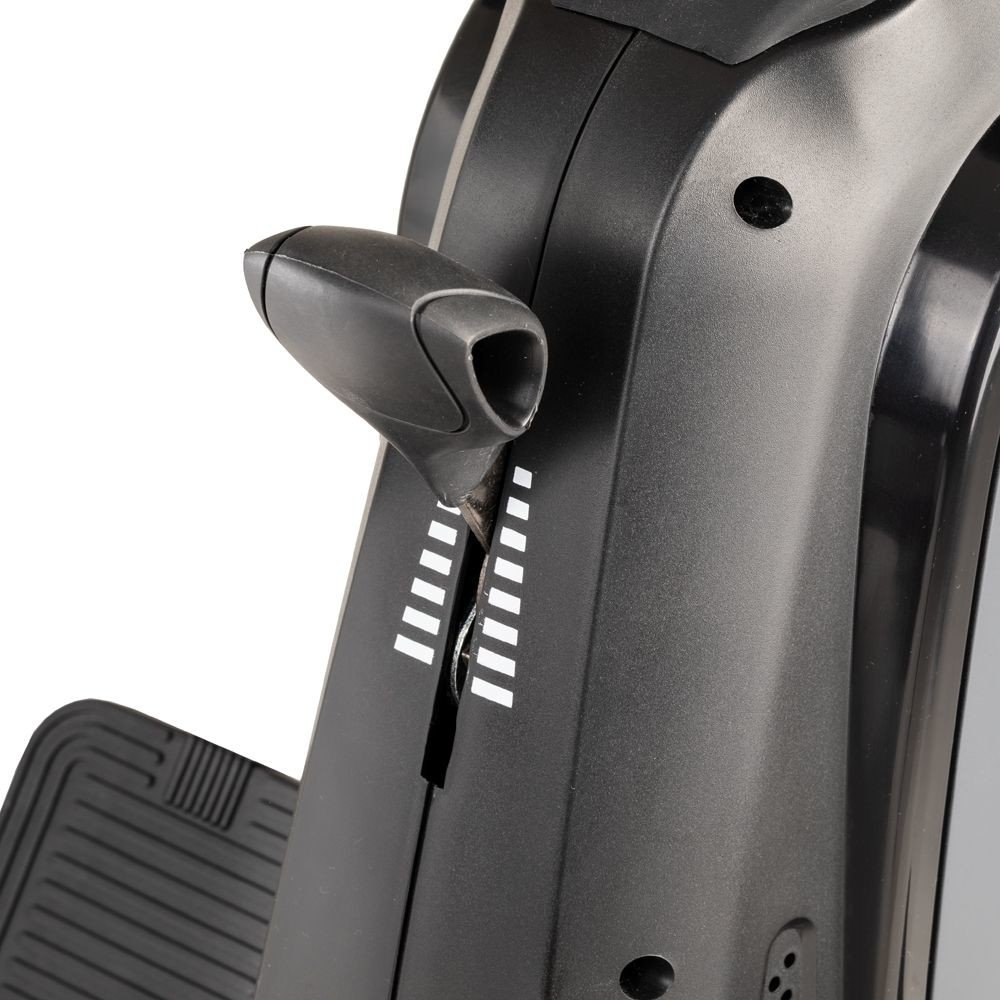 K nastavení jedné z 8 úrovní zátěže slouží praktická páčka hned pod úchytem. Na displeji uvidíte všechna základní data, jako je čas, vzdálenost, kalorie a počet záběrů. Můžete si na něm také nastavit cíl tréninku a sledovat odpočet na obrazovce.