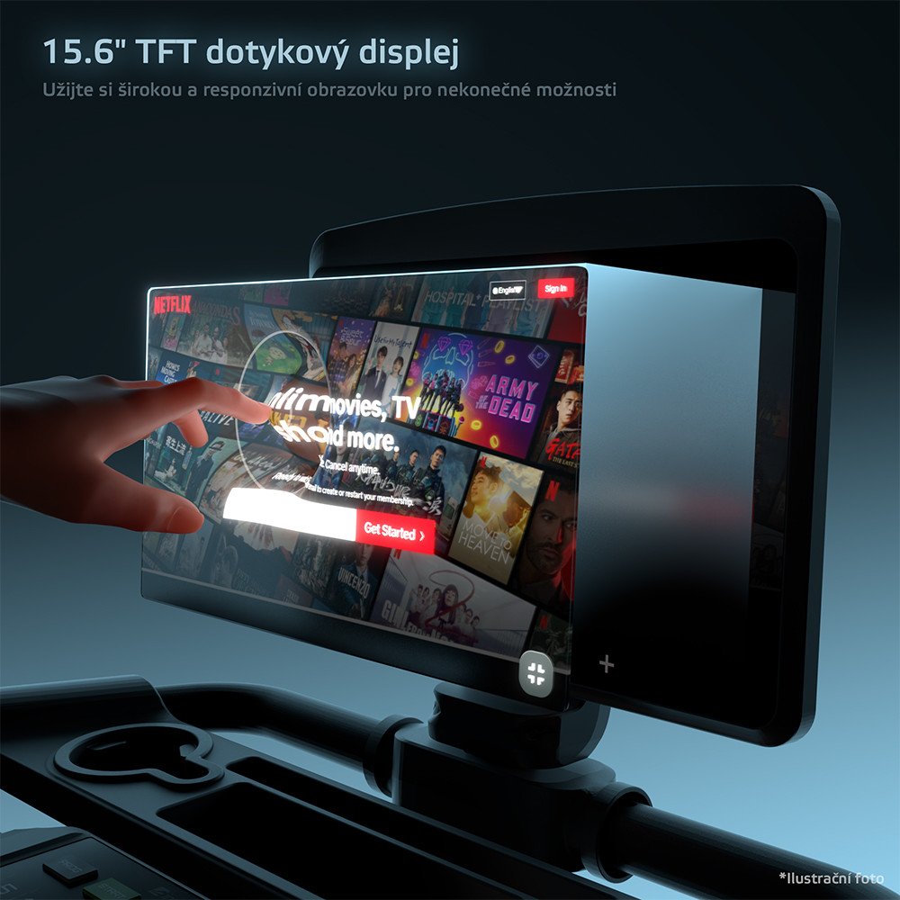 Zažijte chytrý trénink s 15,6" dotykovým otočným TFT displejem, operačním systémem podporujícím češtinu a předinstalovanými aplikacemi bez nutnosti mobilu. Snadné skládání, Bluetooth sluchátka a 36 programů pro efektivní cvičení.