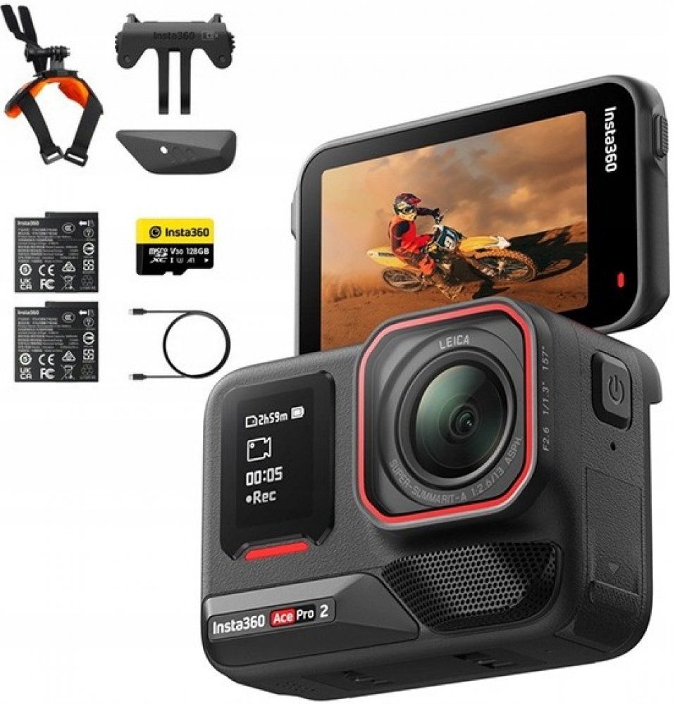 Nová generace výkonné akční kamery Insta360 Ace Pro 2 osazena brilantní optikou společností Leica. Velký 1/1,3" snímač poskytuje výjimečnou kvalitu obrazu. Přesvědčivý robustní design kamery má navíc 2,5" výklopný displej. Kamera Ace Pro 2 je nabitá intuitivními funkcemi snímání, efektivními úpravami AI, které jsou navrženy pro rychlou a snadnou obsluhu. Motocyklová sada s 360° kamerou Insta360 X4 obsahuje navíc akumulátor, helmet chin mount (Inst100-28) a paměť.