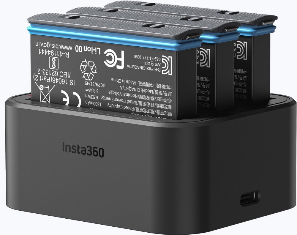 Nabíjecí stanice na tři baterie je určená výhradně pro nabíjení baterií akční kamery Insta360 X3. Se stanicí nabijete jednu baterii přibližně za 90 minut. Díky stanici už nebudete muset baterie po jedné při nabíjení měnit. Pořiďte si tento usnadňovač pro nabíjení všech baterií ke kameře.