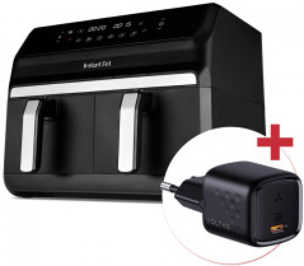 Horkovzdušná fritéza, duální, příkon 1850 W, objem 8 l (2x 4 l), digitální displej, regulace teploty, časovač, dotyková tlačítka, kontrolka provozu, 8 přednastavených programů