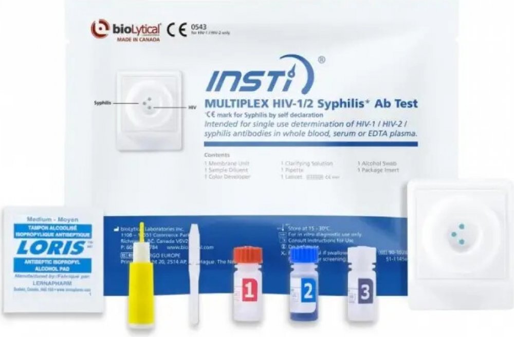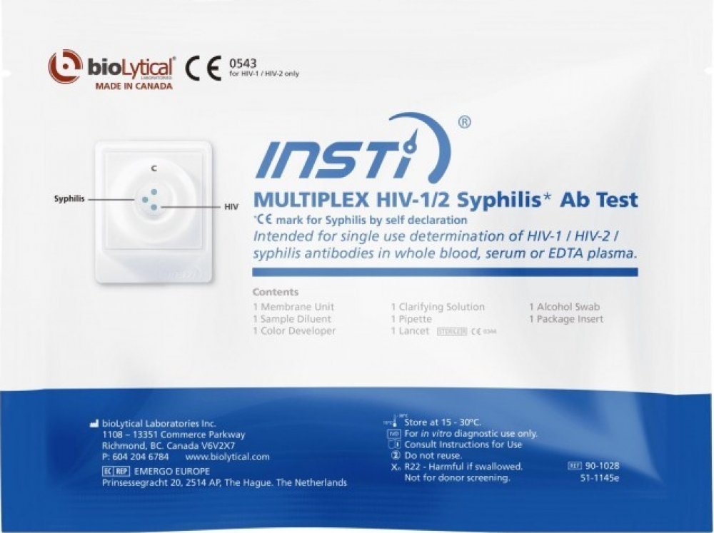 INSTi Multiplex HIV-1/2 Syphilis Ab testovací sada je jednotlivě balený test pro ženy i muže. Každá souprava obsahuje všechno potřebné k provedení 1 testu. Tent test je určen zejména pro použití odborným personálem. Není doposud schváleno pro sebetestování.