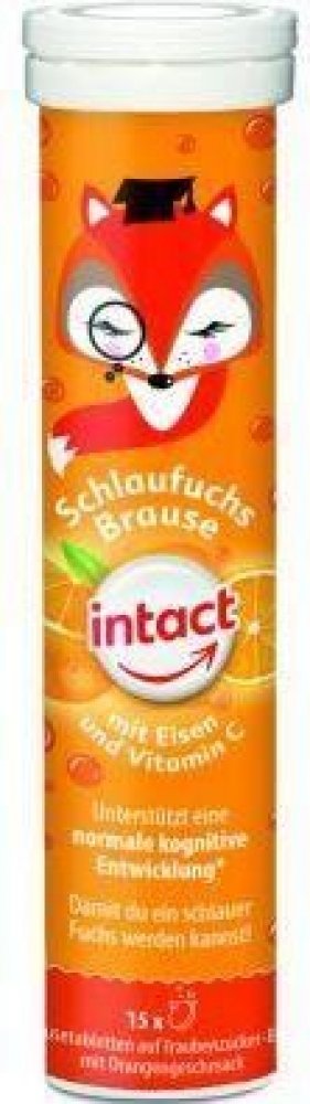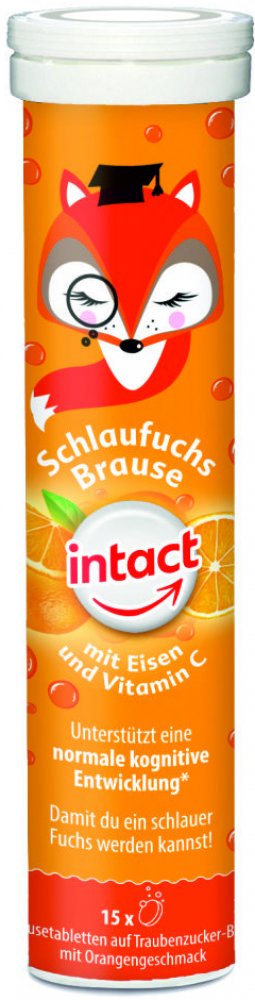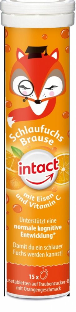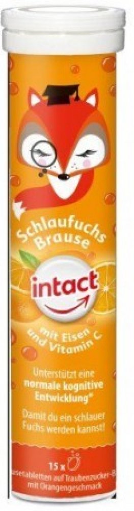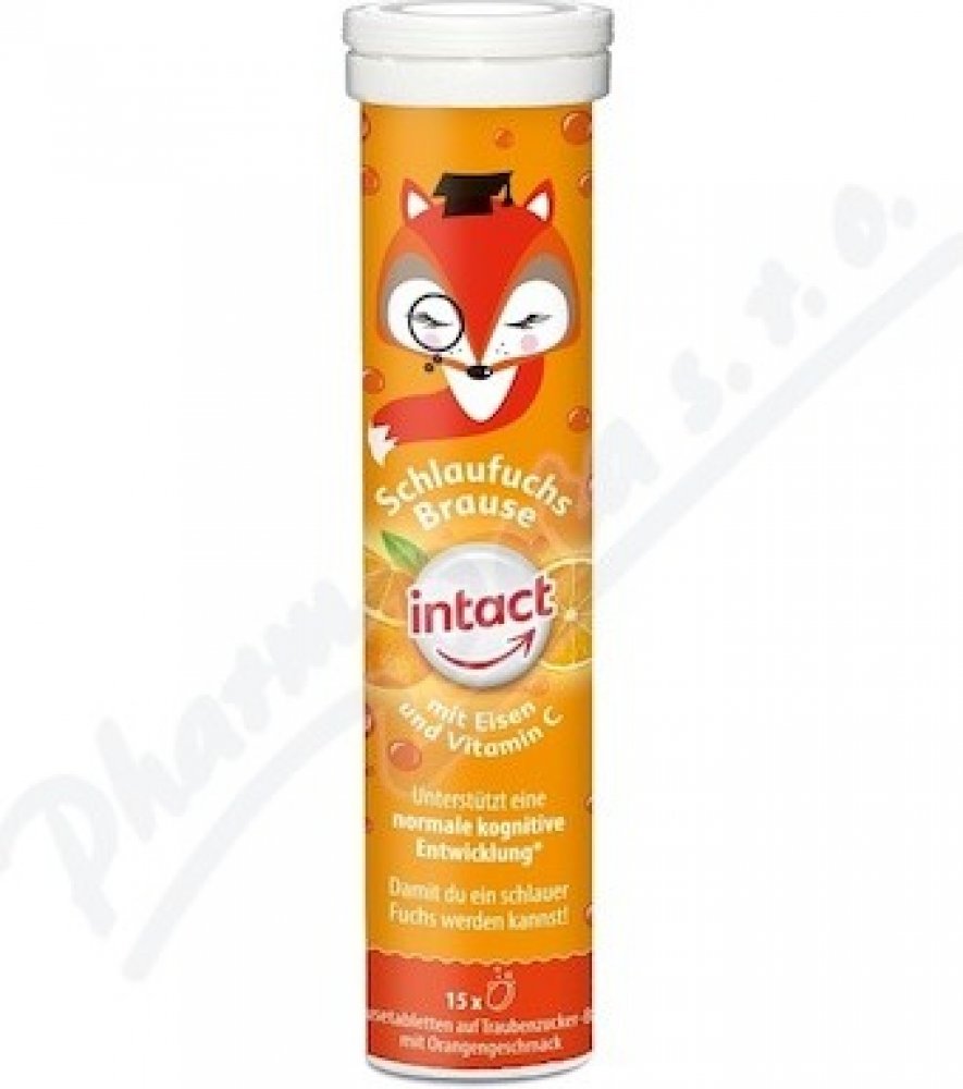 Doplněk stravy, vitaminový přípravek s minerálem a se sladidly. Intact Chytrá liška se železem a vitaminem C podporuje rozvoj paměti a myšlení. Šumivé tablety s hroznovým cukrem s příchutí pomeranče. Vitamin C přispívá k normální činnosti nervové soustavy. Železo přispívá k normálním rozpoznávacím funkcím.