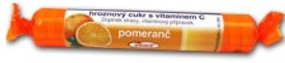 Doplněk stravy, vitaminový přípravek. Pastilky z hroznového cukru s vitaminem C a příchutí pomeranče. Bez lepku a laktózy.