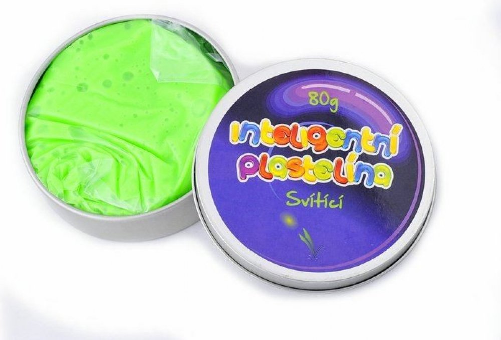 Inteligentní plastelína je zábavná hmota, kterou je radost žmoulat v ruce, natahovat, koulet, válet, trhat nebo roztahovat. Až Vás někdo naštve, nemusíte mlátit do stolu a řvát, ale pouze si stačí vzít do ruky tuto šikovnou věcičku, která slouží jako velmi účinná antistresová pomůčka.Tuto hmotu, vyrobenou na silikonovém základě, odlišuje několik překvapujících fyzikálních vlastností. Inteligentní plastelína je díky svojí konzistenci velmi podmanivá a nedovoluje člověku nechat ji v klidu.Svítící plastelína:Jak již název napovídá, tento druh Inteligentní plastelíny ve tmě svítí. Má totiž luminiscenční vlastnosti. Stačí jí nabít pod lampou, zhasnout a poté se už můžete kochat její magickou září. Tato skutečnost z ní dělá ideální hmotu k různým pokusům. Můžete na ní kreslit nebo vytvářet světelné fotografie.Každá plechovka obsahuje 80g plastelíny.Rozměry: Průměr krabičky: 8,5 cm Technická specifikace: Váha plastelíny: 80 g Barva: zelená