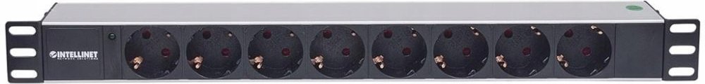 Intellinet 714037. Kapacita racku: 1U, Připevnění: Vodorovný, Základní materiál: Hliník. Počet zásuvek: 8 AC zásuvky / AC zásuvek, Typy zásuvky pro napájení ze sítě: Typ F. Délka kabelu: 1,8 m. Nominální vstupní napětí: 250 V, Maximální proud: 15 A. Šířka: 44,4 mm, Hloubka: 482,6 mm, Výška: 62 mm