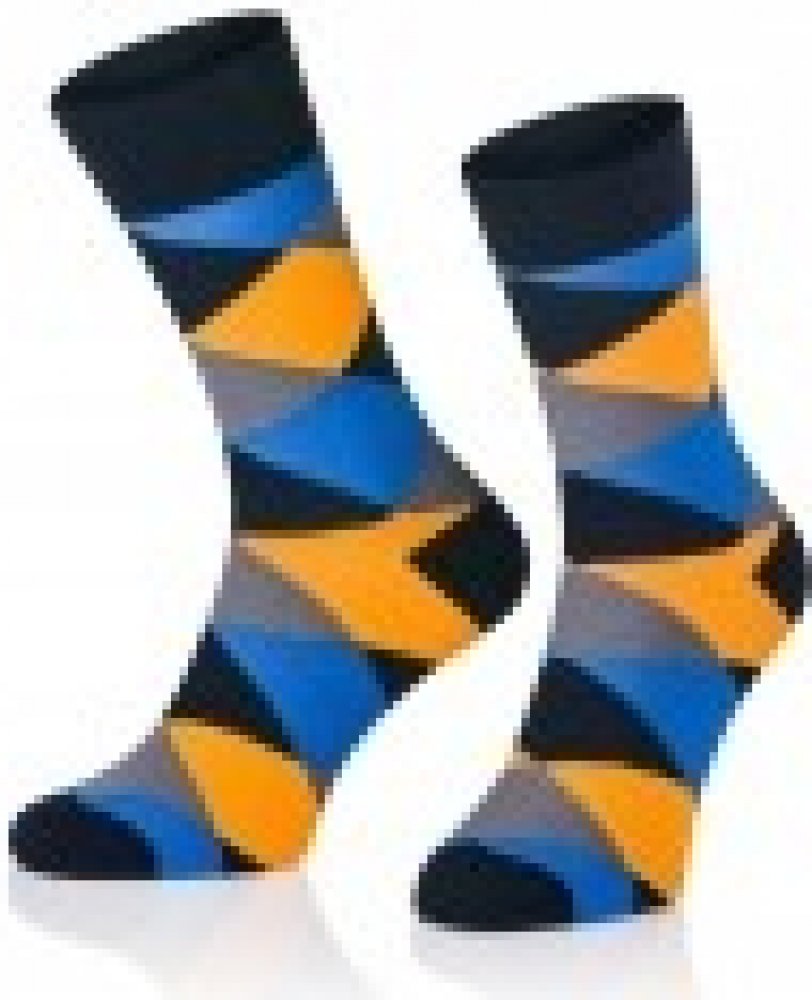 Elegantní černo modro žluté vysoké ponožky značky Intenso s retro vzorem.