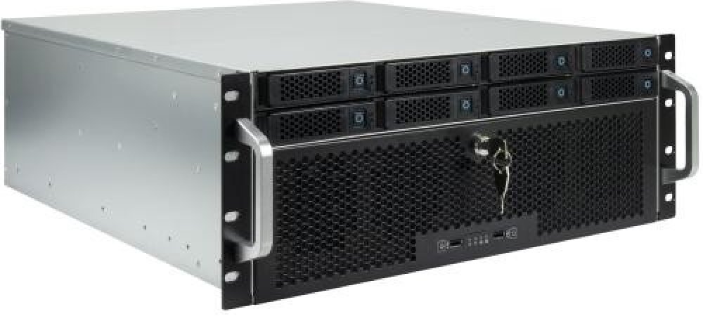 Skříň do racku, výška 4U, pro desky formátu Mini-ITX, mATX, ATX, E-ATX, SSI CEB a SSI EEB; pozice: 8x 3,5/2,5" hot-swap externí, 1x 2,5" interní; výška chladiče procesoru až 150 mm, délka grafických karet až 265 mm, 2x přední USB 2.0 konektor; předinstalovaný 4x 80 mm ventilátor.