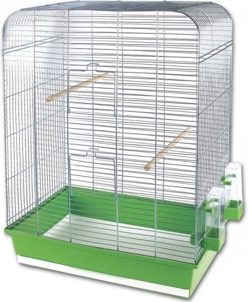 Součástí klece je základní vybavení (2 x krmítko, 2 x bidýlko).