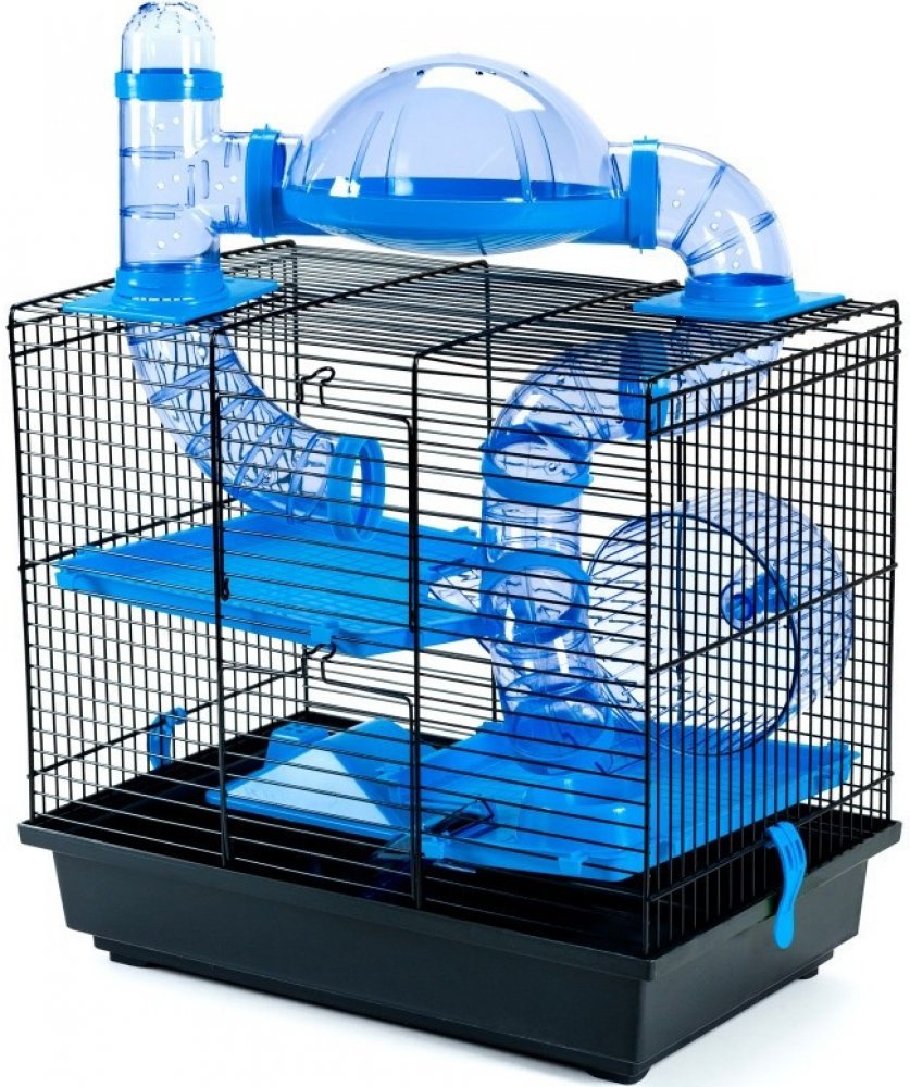 Klec s oblíbeným labiryntem pro malé hlodavce, hlavně křečky. Součástí klece je kolotoč, domeček,