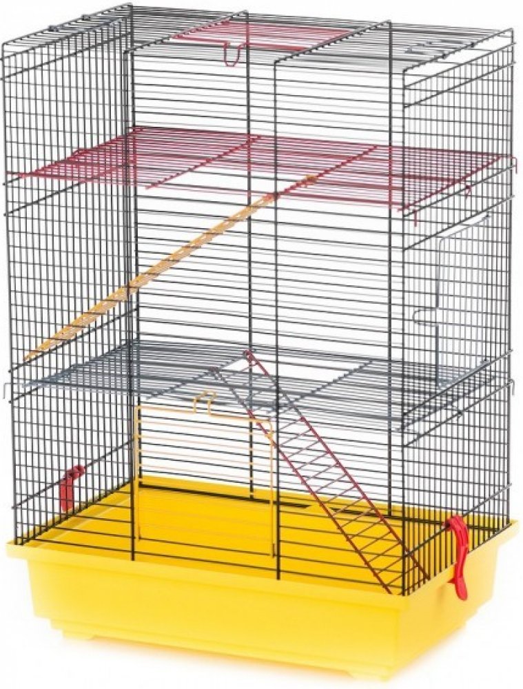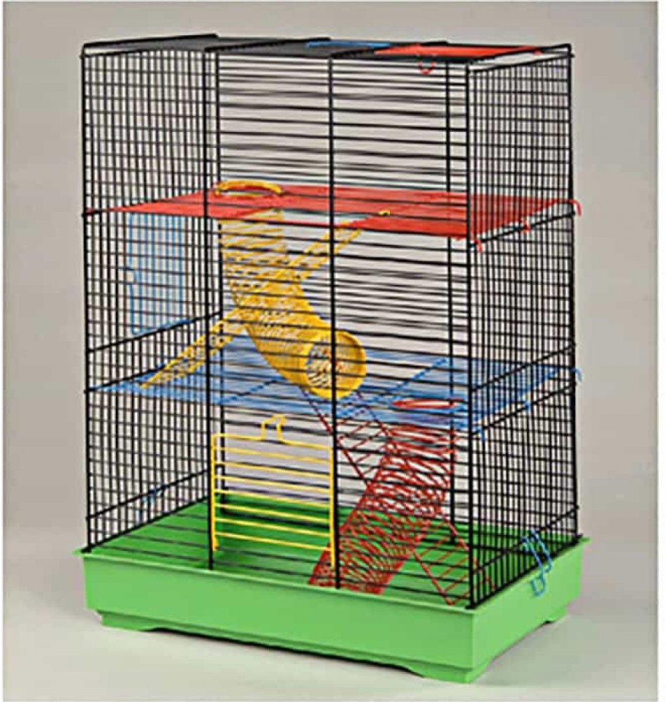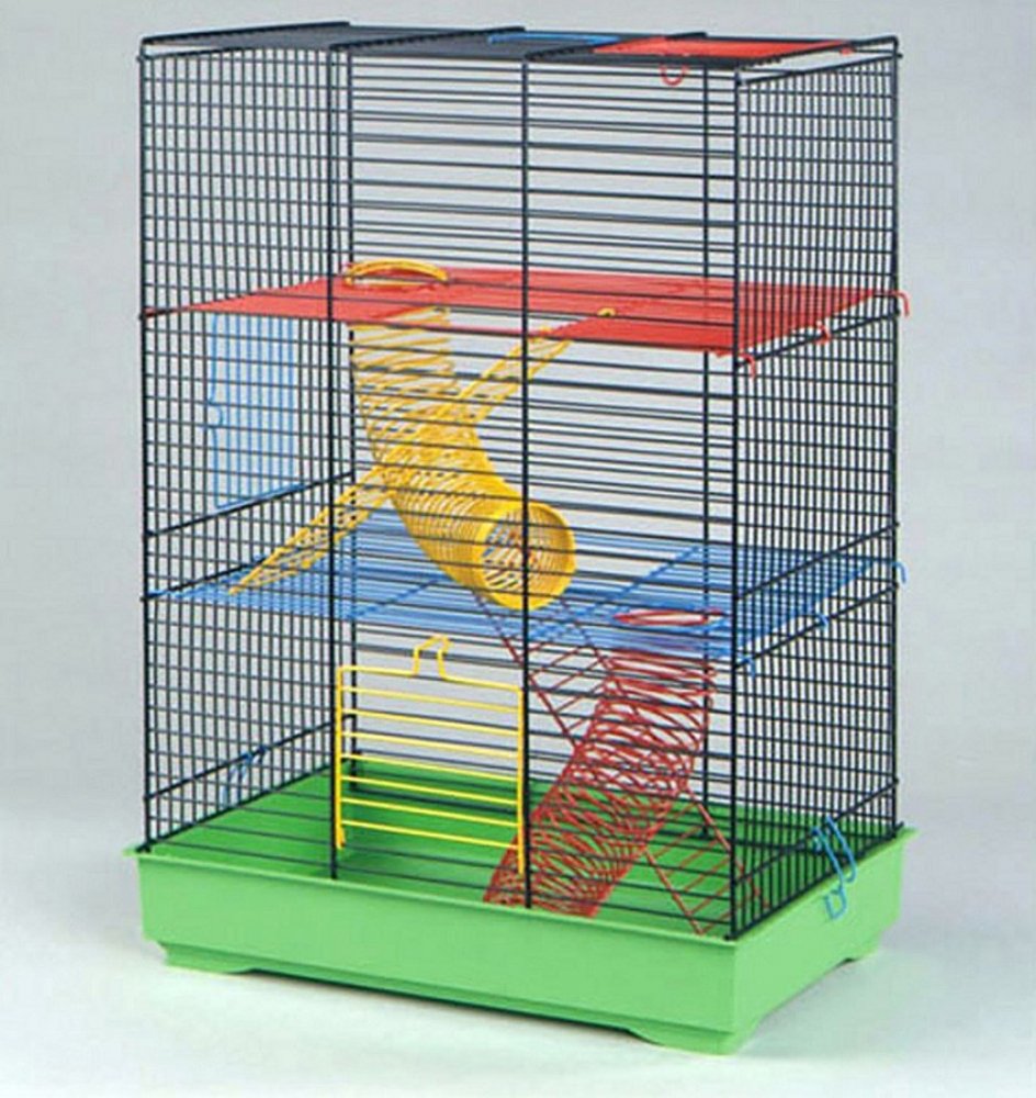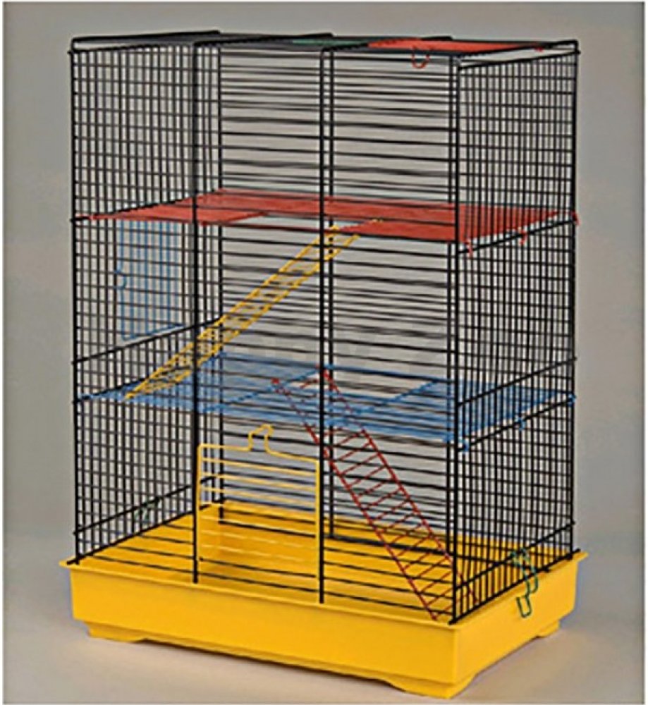 - drátěná třípatrová klec s drátěnými pružinami, které poslouží jako prolézačky mezi jednotlivými patry nebo záchytné body při šplhání