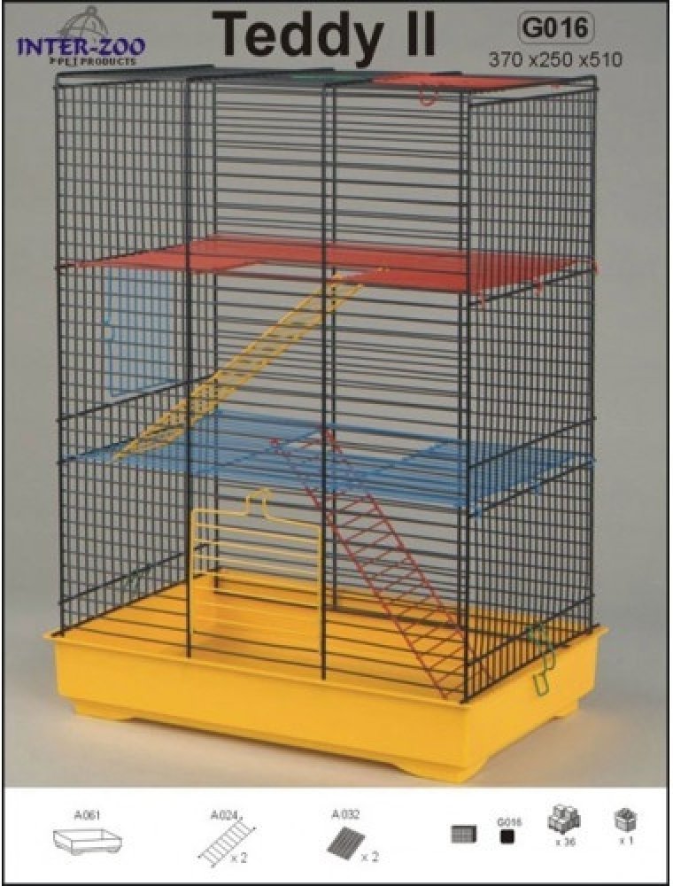 Klec INTER-ZOO Teddy II Color (s pružinou) 37x25x51cm (MIX BAREV)Klec pro drobné hlodavce