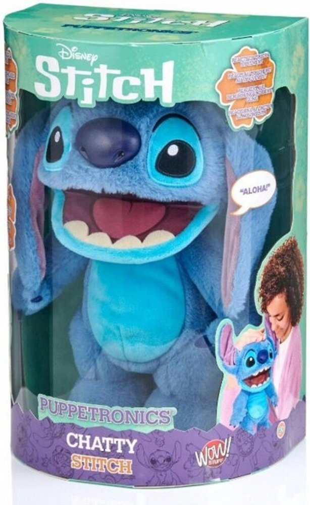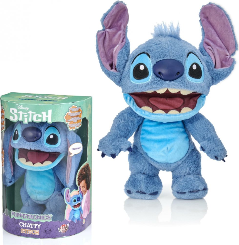 Díky pokročilé technologii Puppetronics Stitch dokáže komunikovat, vyslovovat pro něj charakteristické fráze a hlášky. Je to ideální společník na hraní, který přinese spoustu radosti a obohatí dětská dobrodružství ve světě fantazie.
