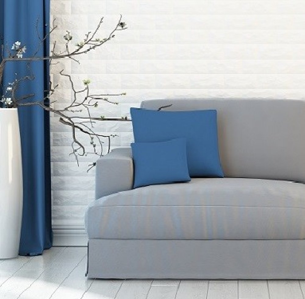 Látka je hladká, jemná na omak a v lehkém lesklém odstínu. Závěsovina má modrou barvu.