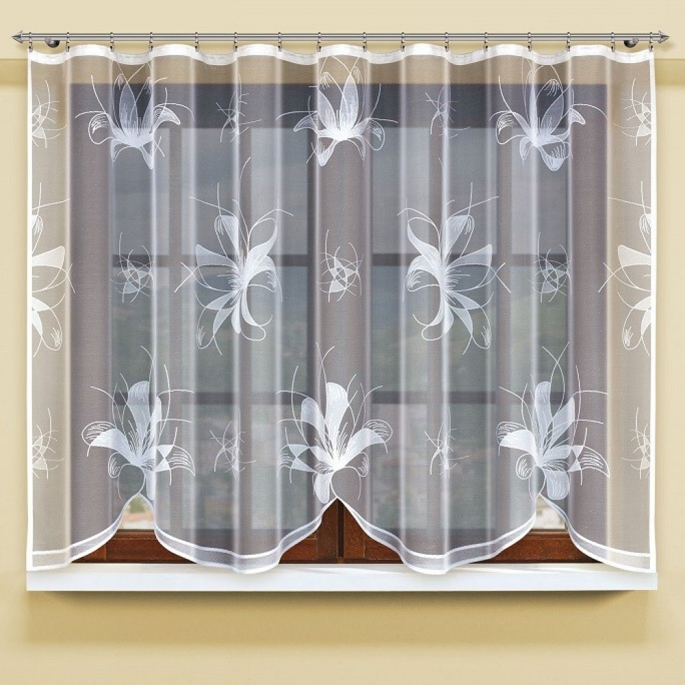 Podrobnosti o produkte ZK21219-1 145 x 300 cm Bílá kusová záclona Roberta. Tato záclona s květinovým vzorem je ideálním doplňkem do moderně zařízených interiérů.Jedná se o hotovou záclonu, zabalenou a připravenou k odeslání. Má pevné okraje a našitou řasící stužku. Spodní okraj záclony je ukončen obloučky. Uvedená výška záclony je měřena v nejdelším místě. Materiálové složení: 100procent polyester